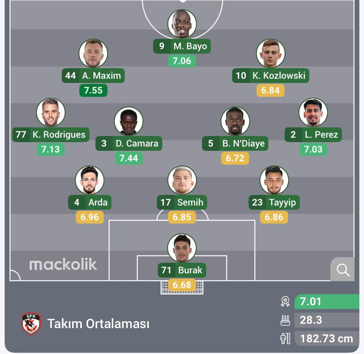 Gaziantep FK: Burak Bozan, Tayyip Sanuç, Semih Güler, Arda Kızıldağ, Perez, N'Diaye, Camara, Rodrigues, Kozlowski, Maxim, Bayo