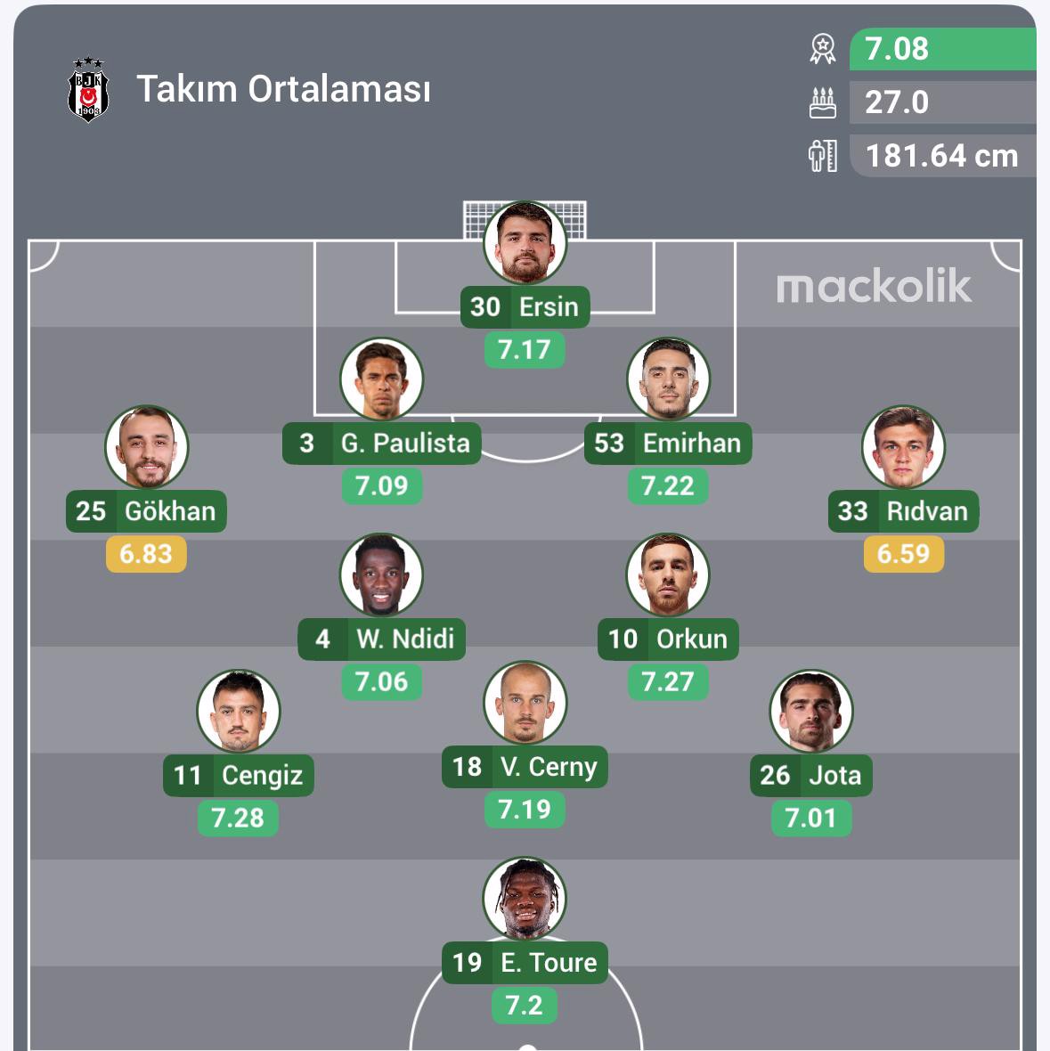 Beşiktaş: Ersin Destanoğlu, Gökhan Sazdağı, Paulista, Emirhan Topçu, Rıdvan Yılmaz, Ndidi, Orkun Kökçü, Cengiz Ünder, Cerny, Jota, Toure