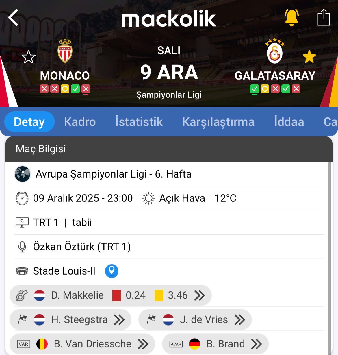 Monaco - Galatasaray mücadelesi 9 Aralık Salı (yarın) TSİ 23.00'te II. Louis Stadyumu'nda oynanacak.
