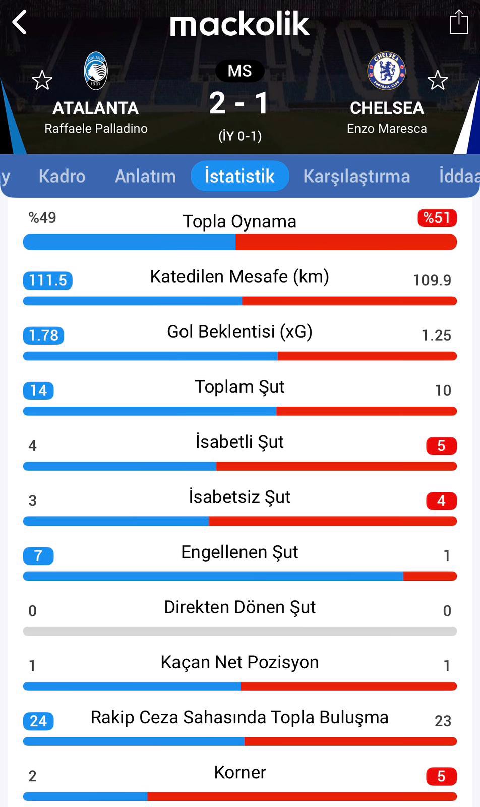 Mücadelenin kalan dakikalarında başka bir gol sesi çıkmadı ve Atalanta, geriye düştüğü karşılaşmadan 2-1 galibiyetle ayrıldı.