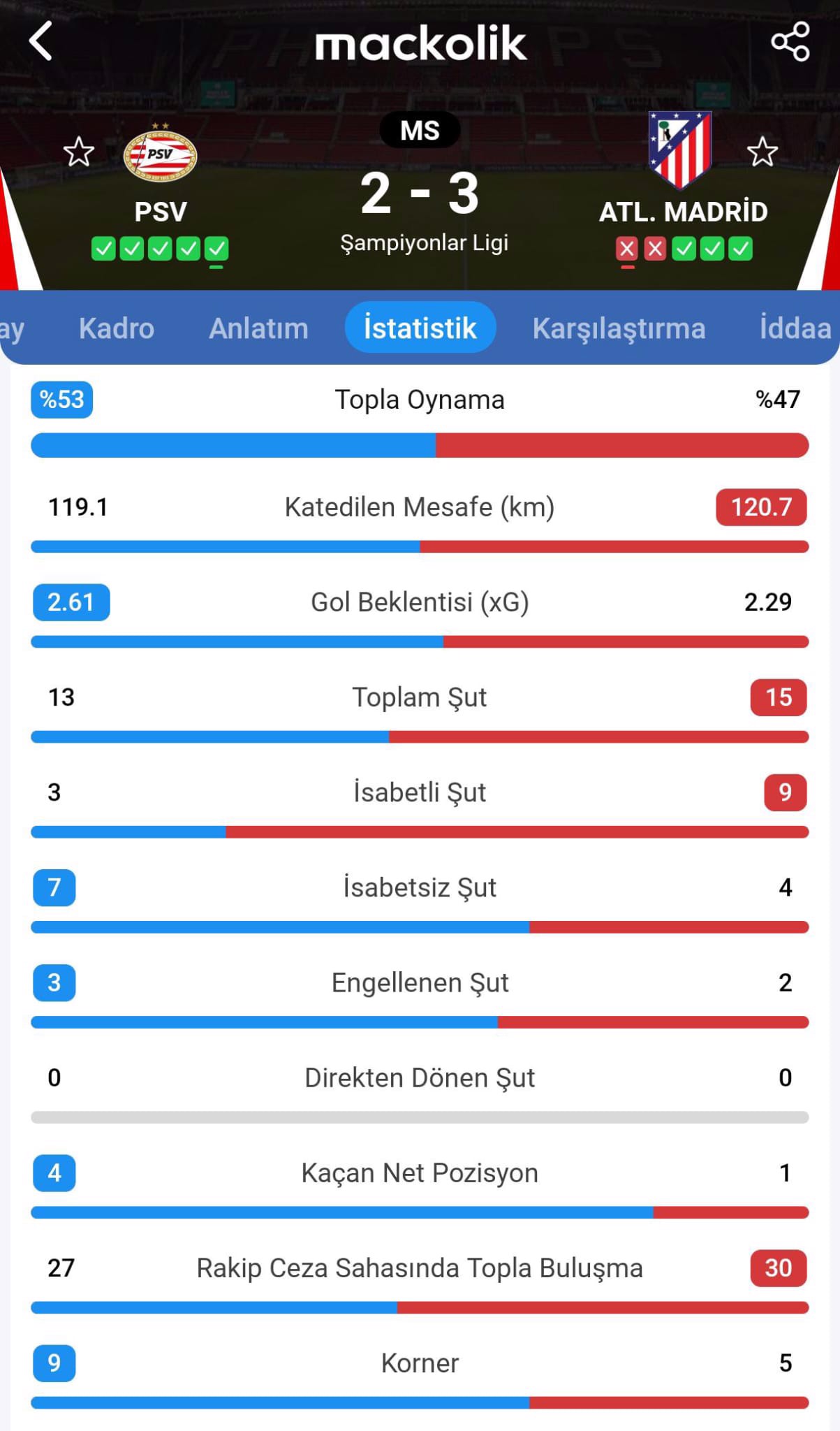 Şampiyonlar Ligi'nin 6. haftasında PSV, Atletico Madrid'i ağırladı.