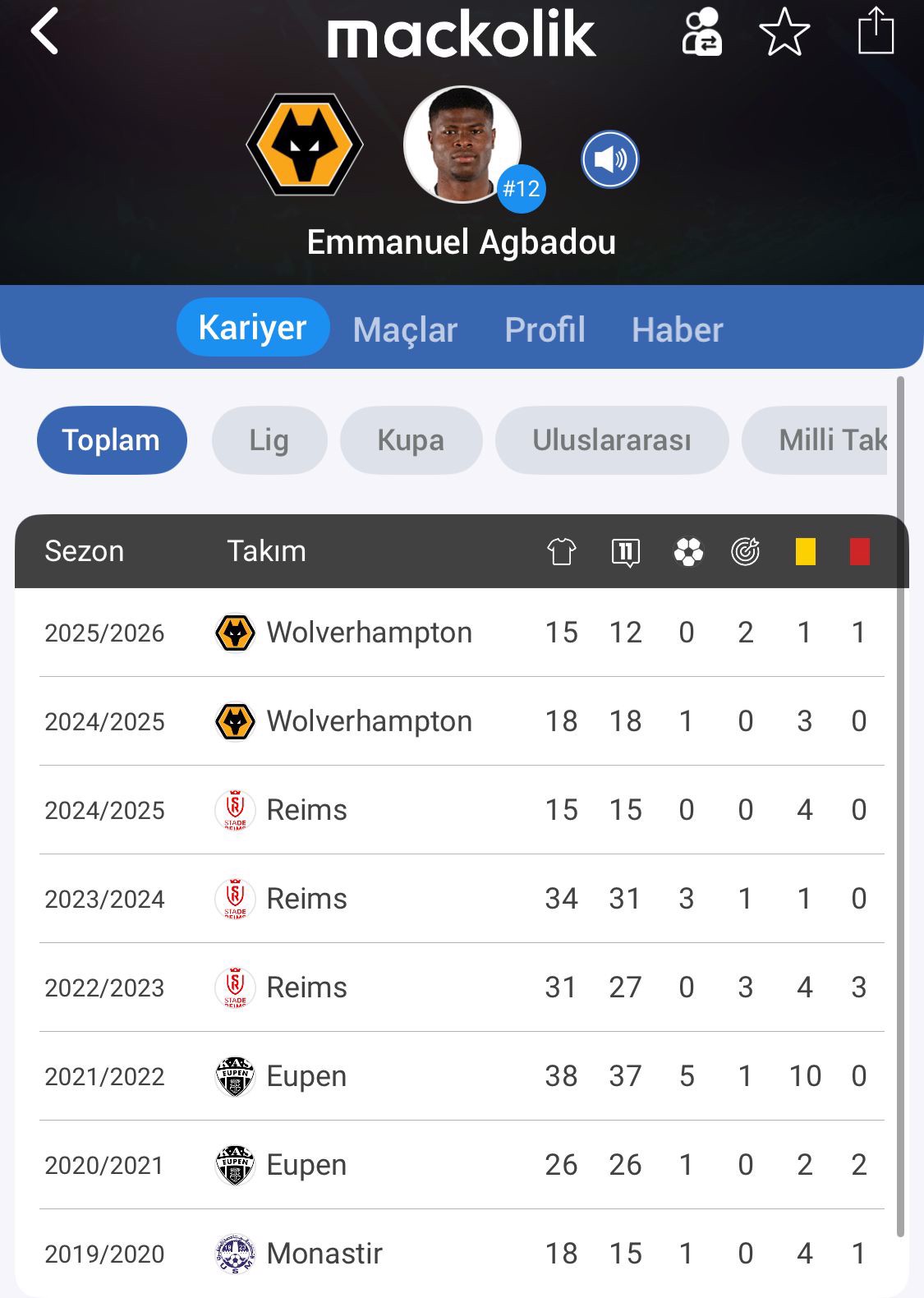 Bu sezon takımıyla 15 maça çıkan Agbadou 2 asiste imza attı.