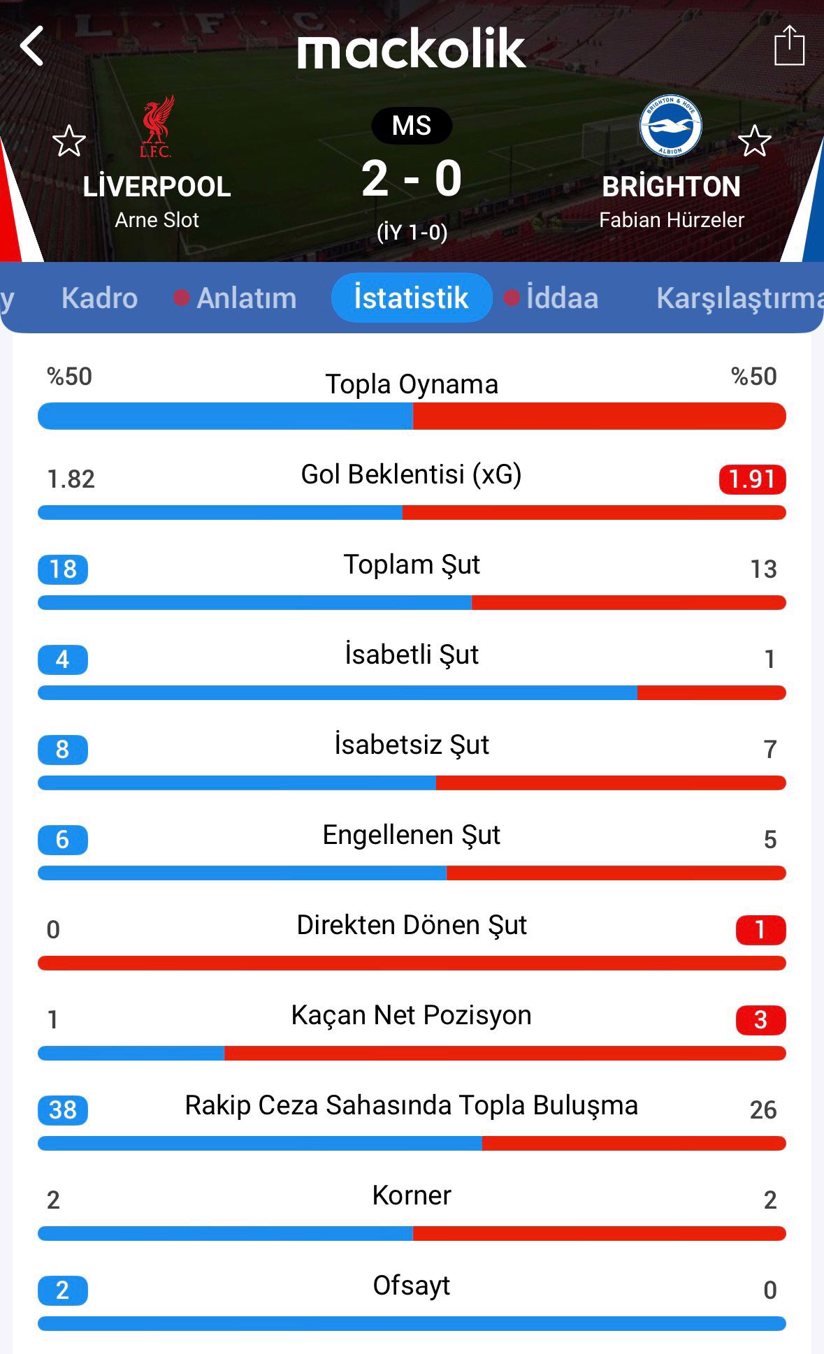 Maçtan İstatistikler
