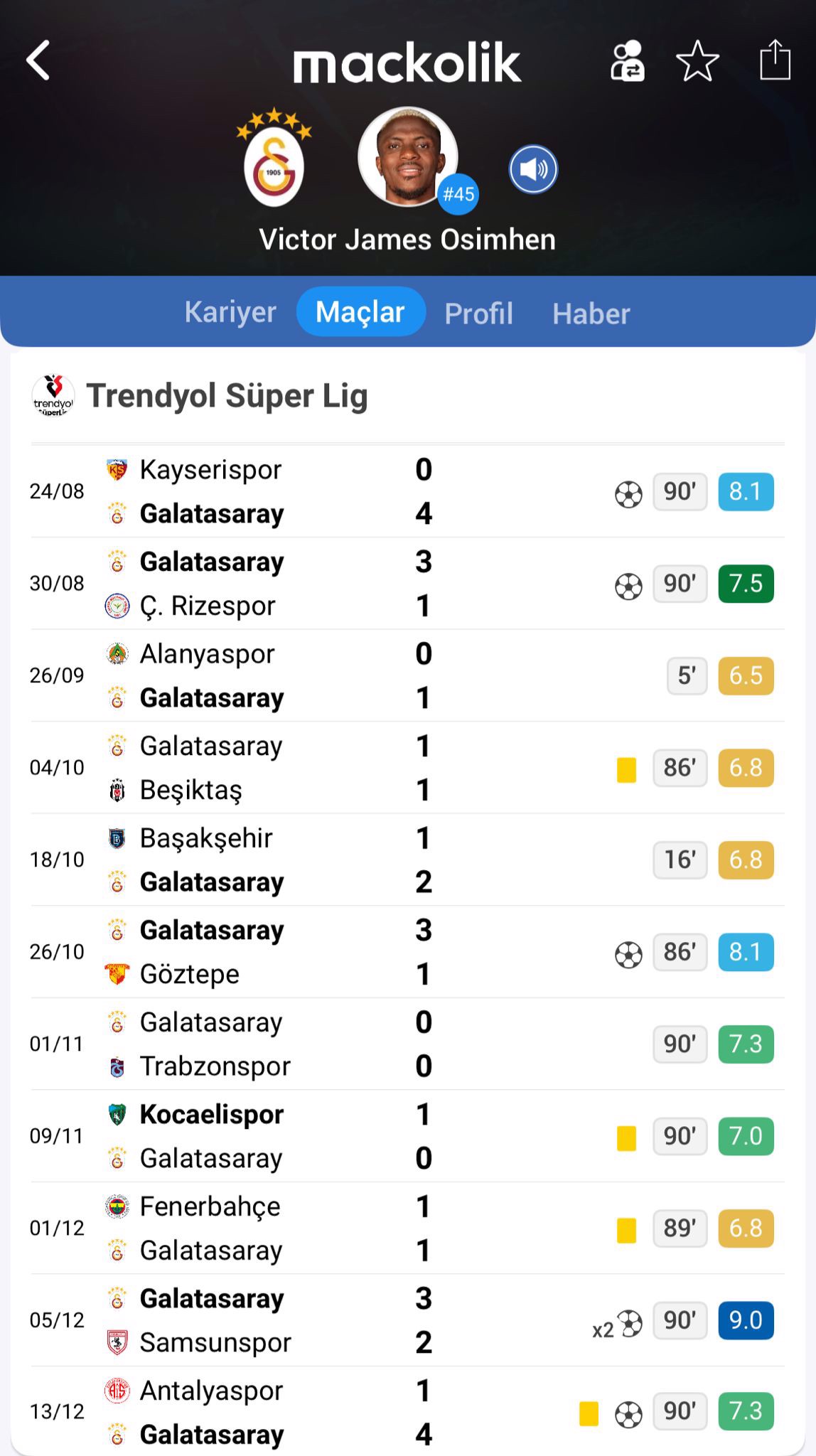 Maçın 85. dakikasında sarı kart gören Nijeryalı yıldız Victor Osimhen, cezalı duruma düştü ve gelecek hafta oynanacak Kasımpaşa maçında oynayamayacak.