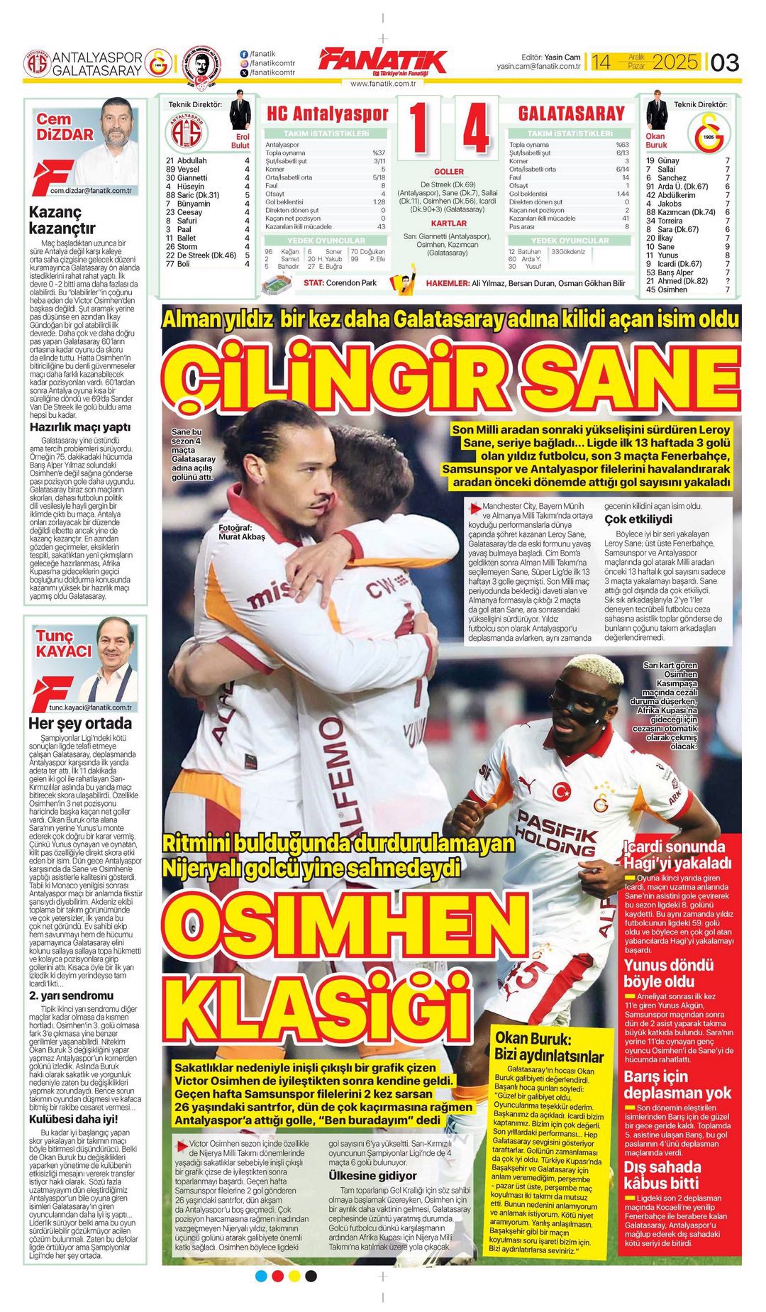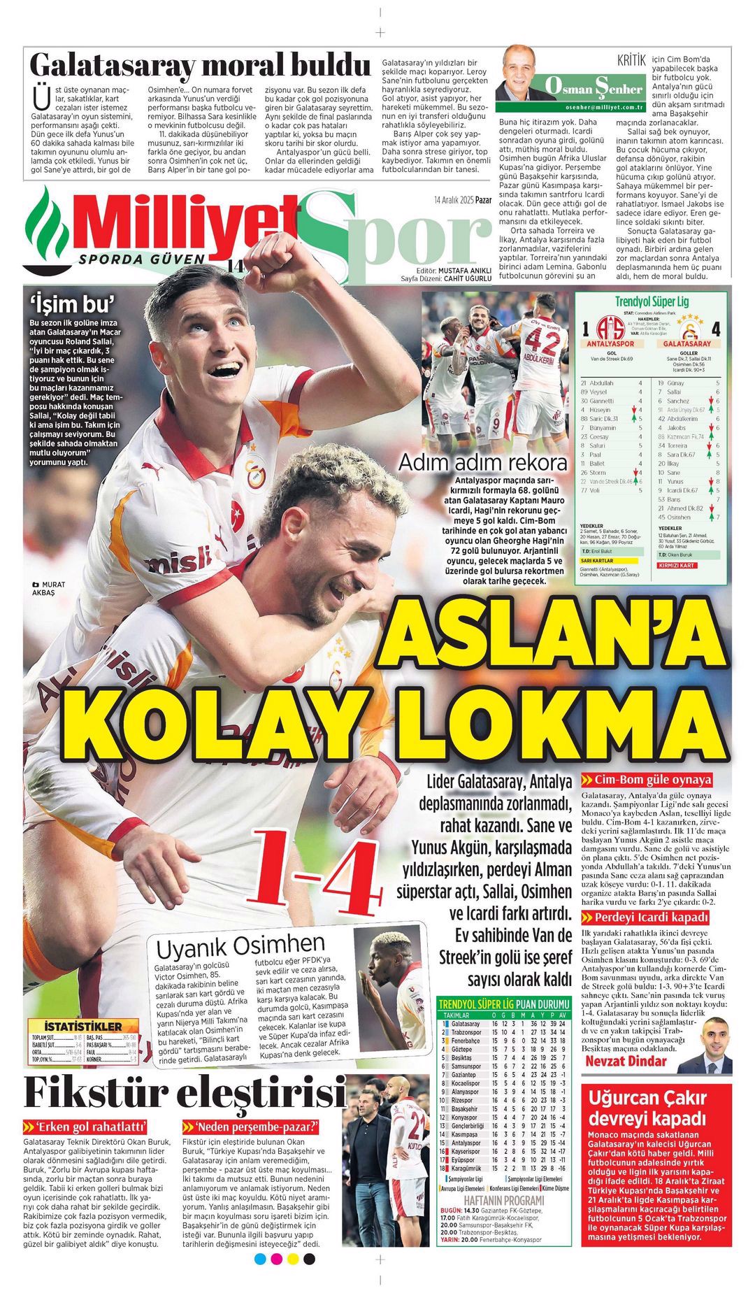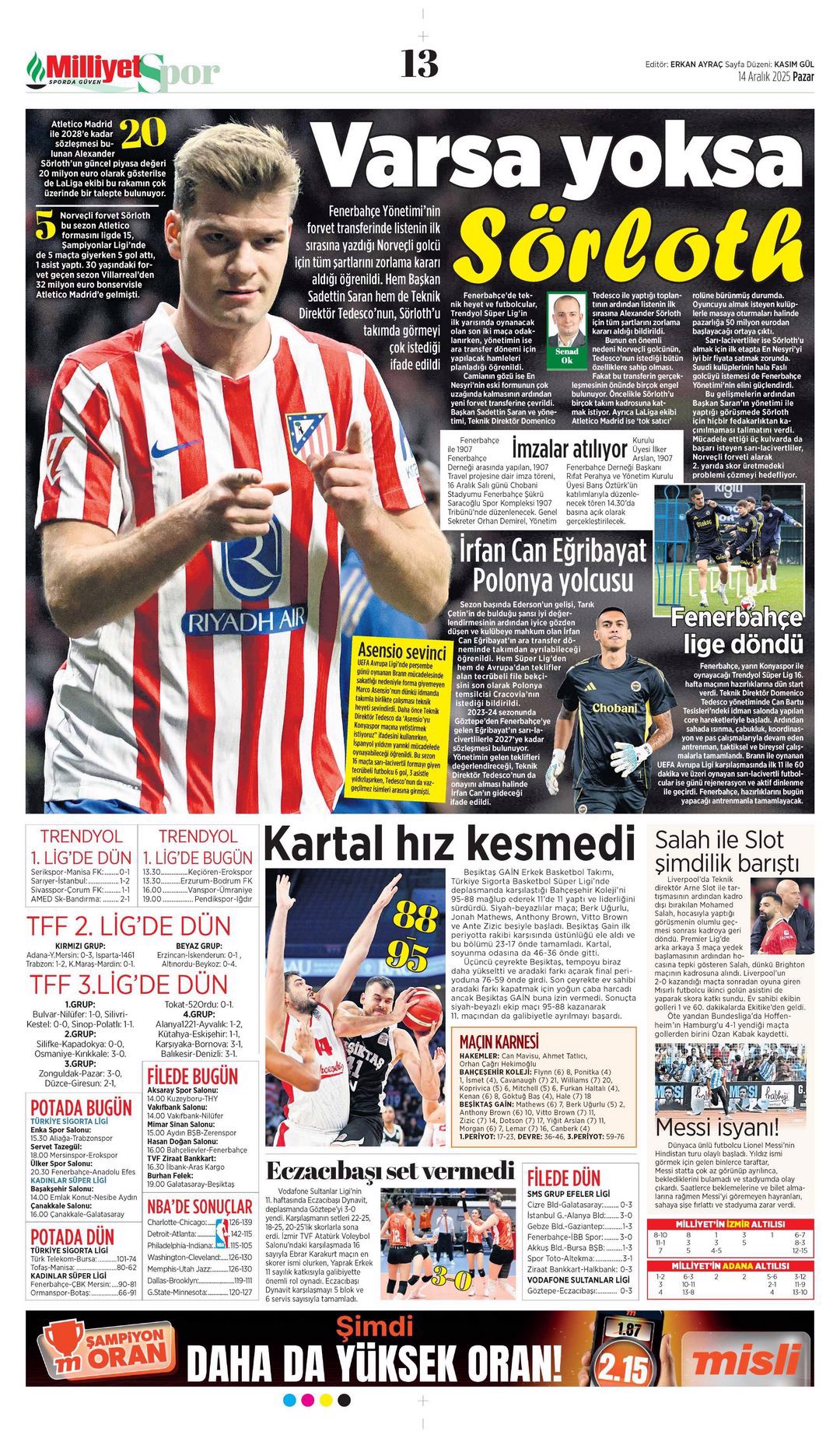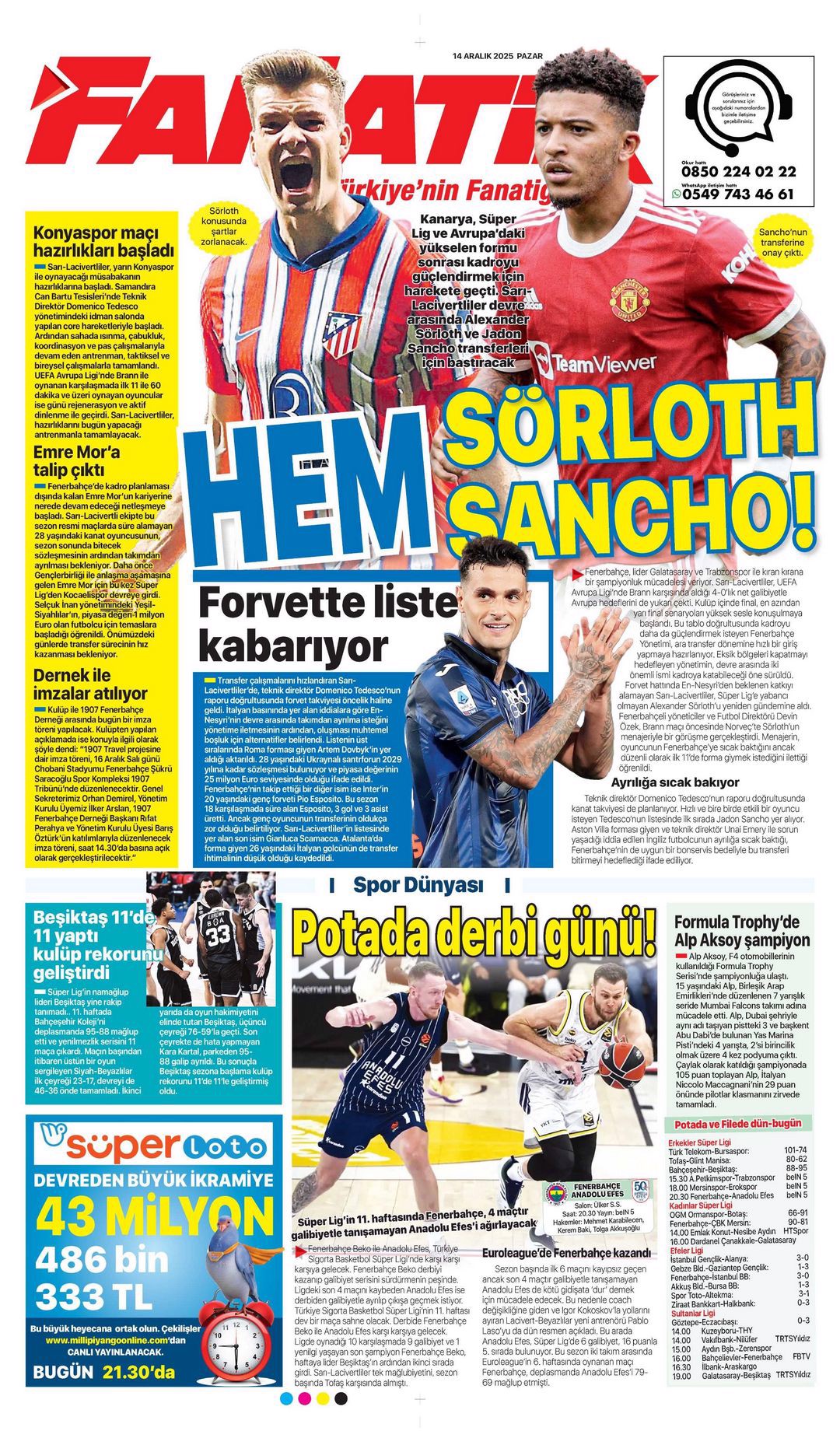 Gazetelerin spor sayfalarında günün öne çıkan manşetlerine göz atabilirsiniz.