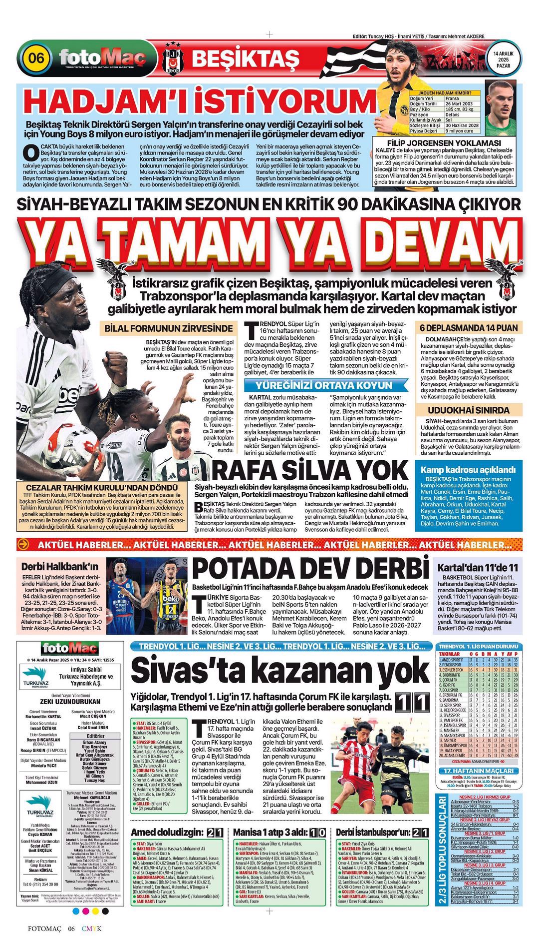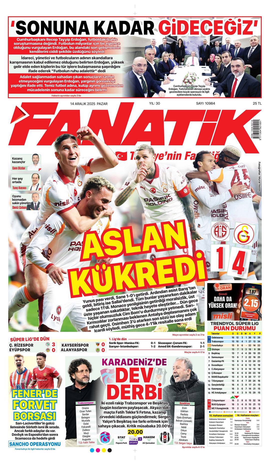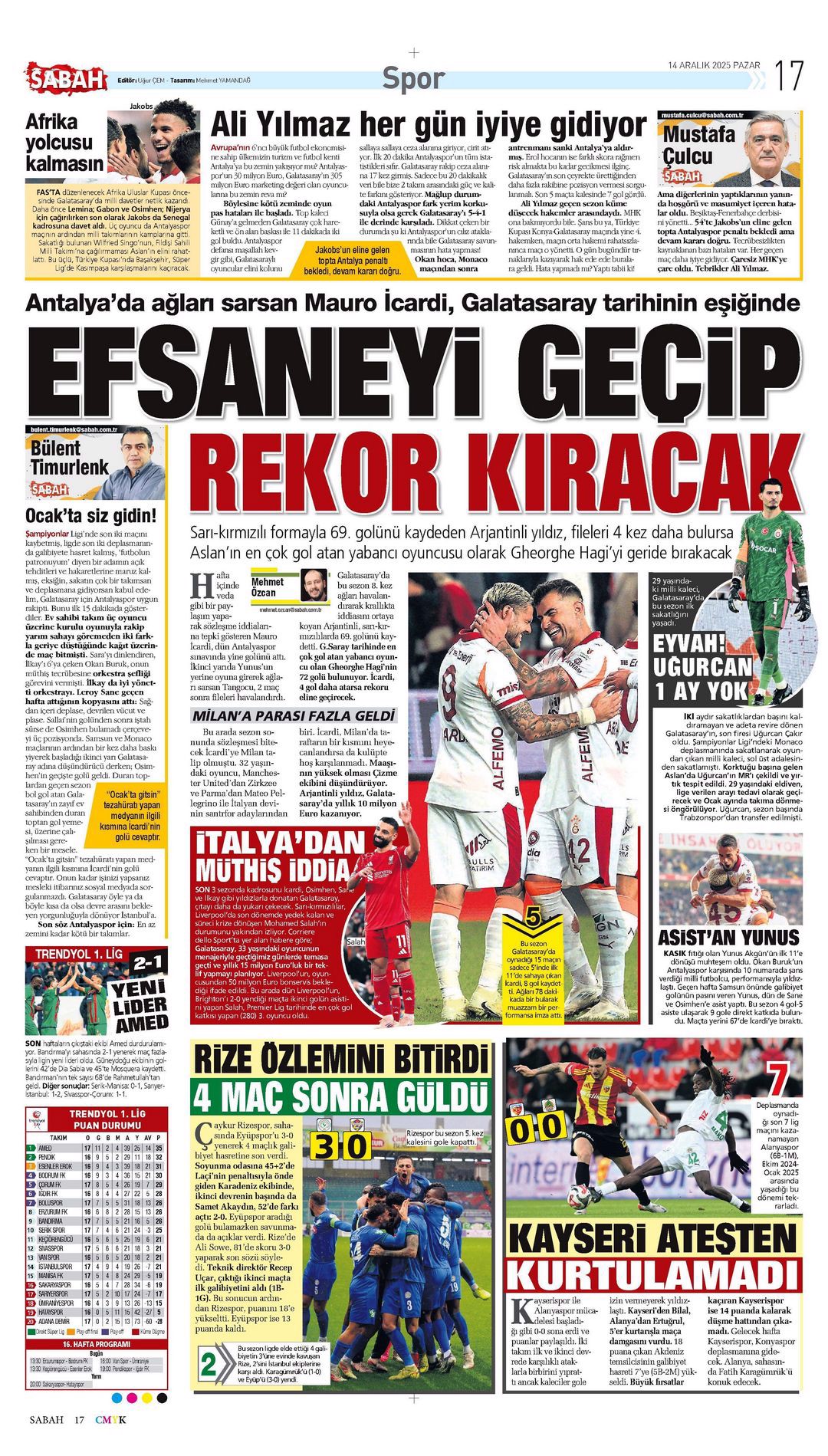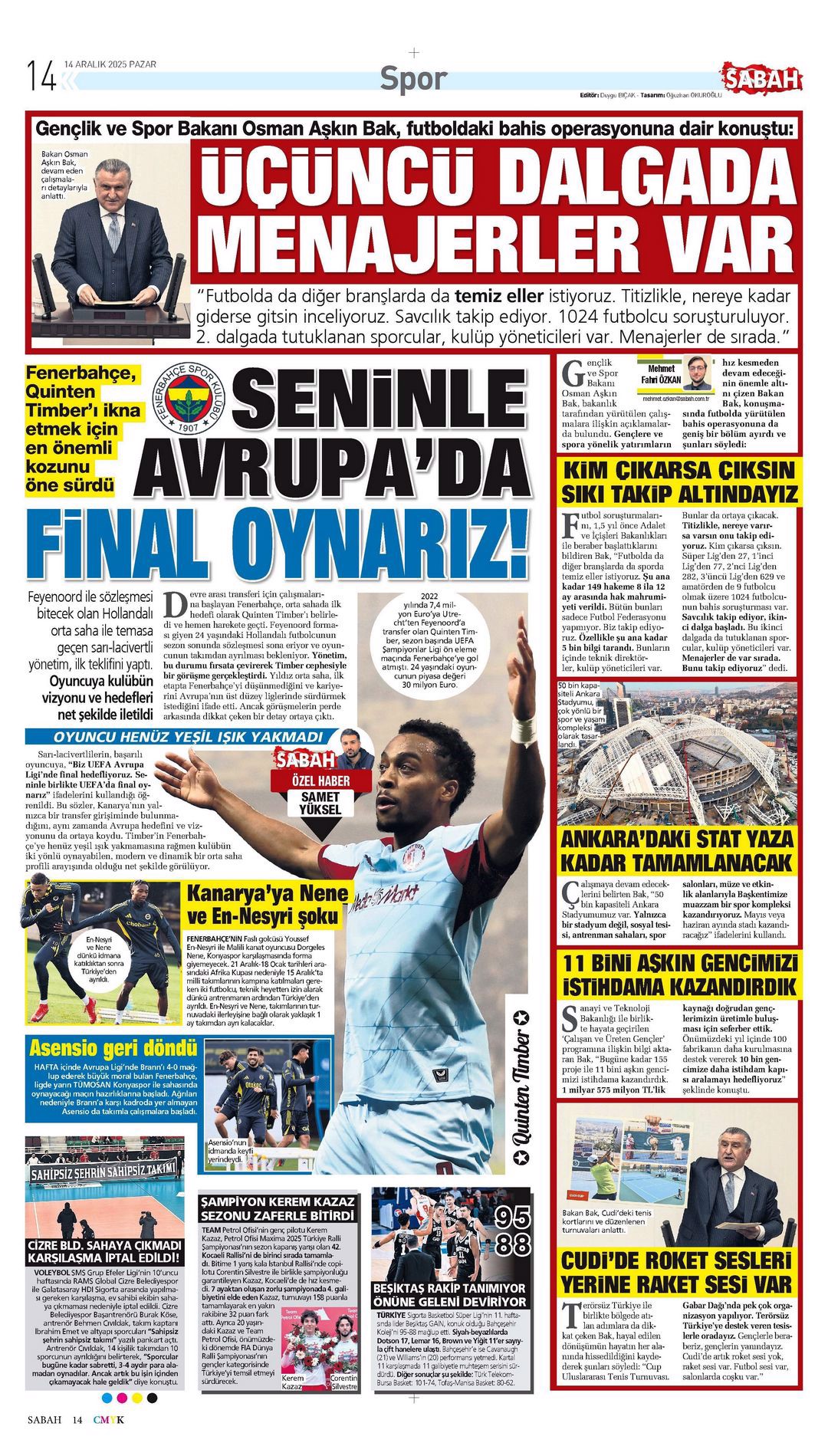 Gazetelerin spor sayfalarında günün öne çıkan manşetlerine göz atabilirsiniz.
