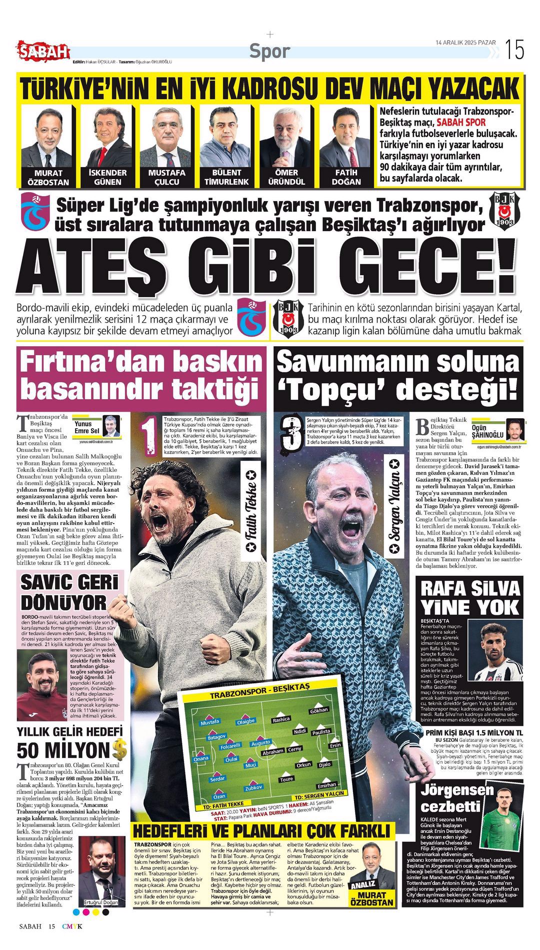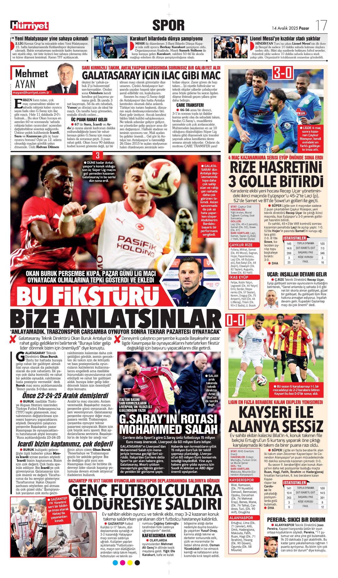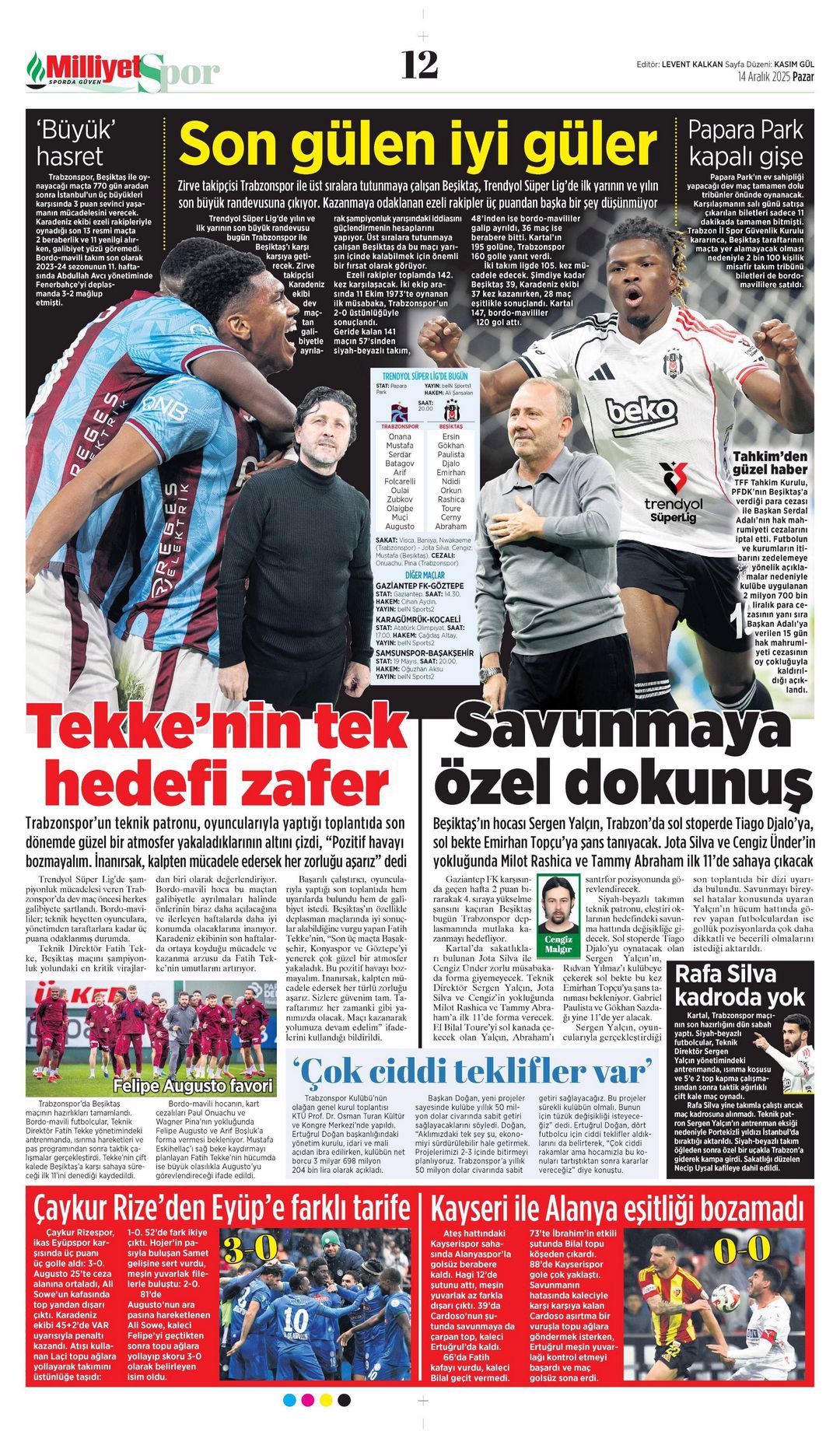 Gazetelerde günün spor sayfaları