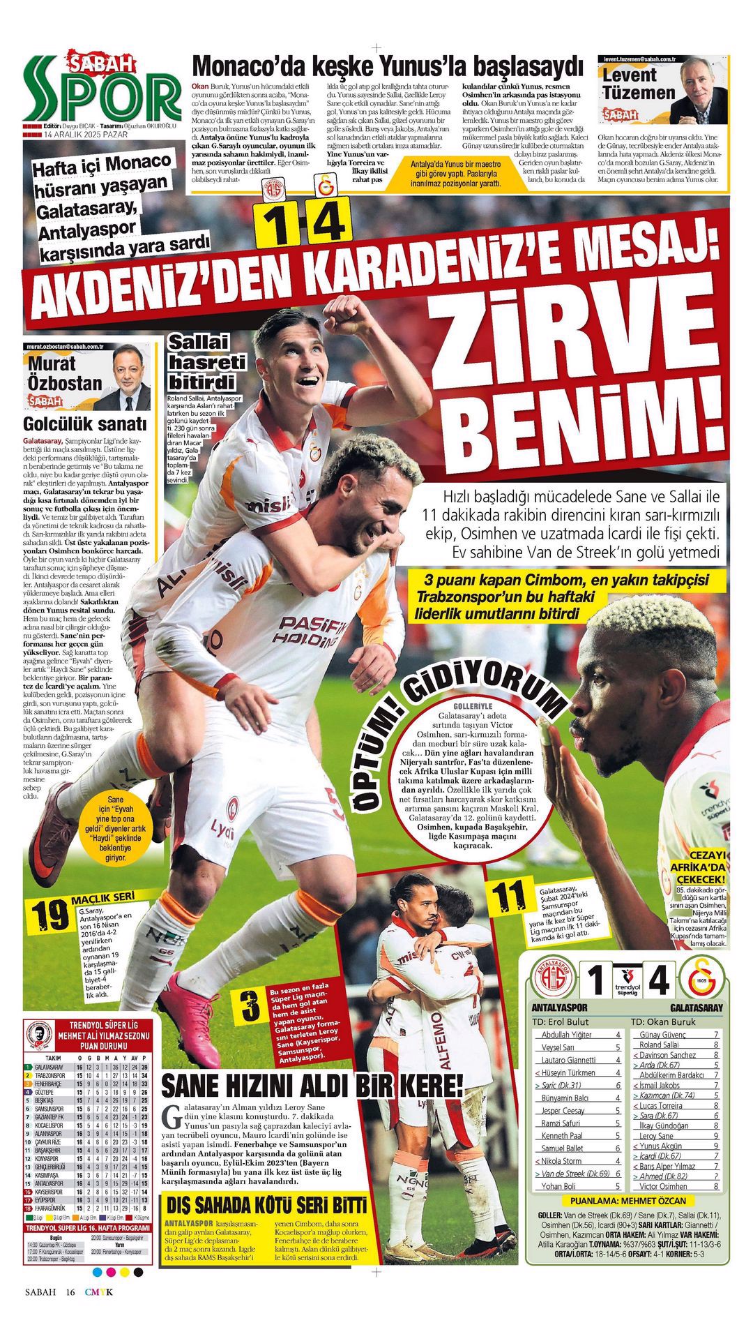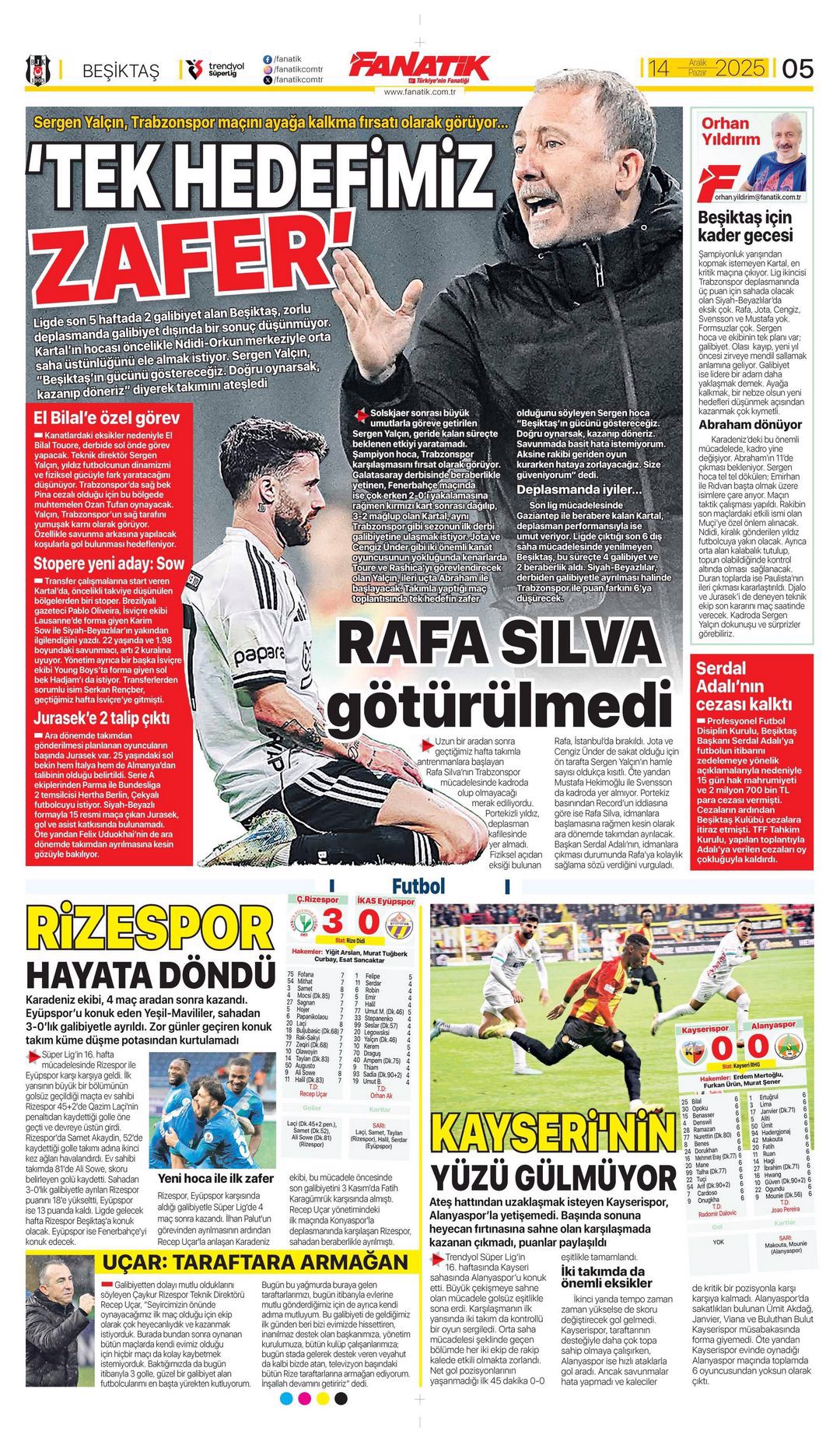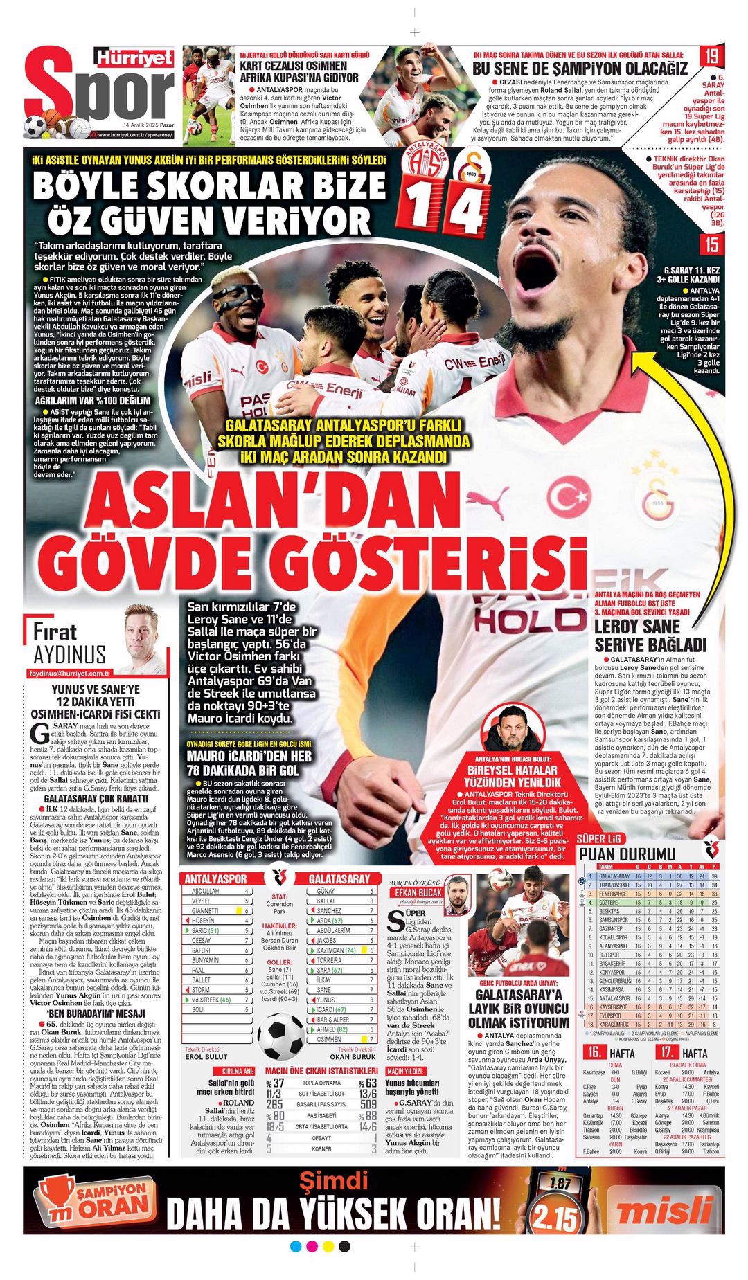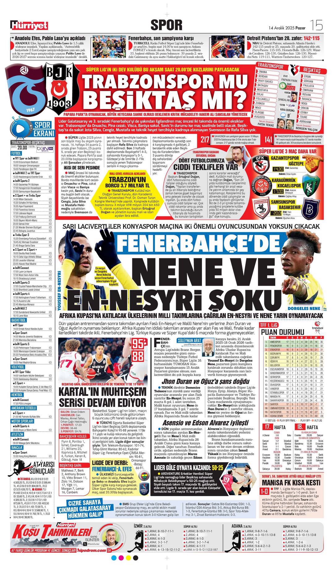 Gazetelerde günün spor sayfaları