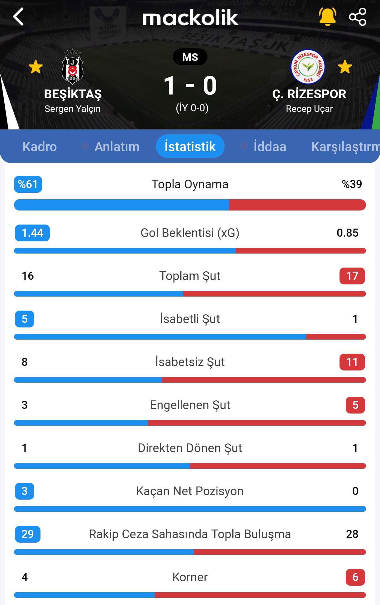 Karşılaşmada başka gol olmadı ve Beşiktaş, Çaykur Rizespor'u 1-0 mağlup etti. Siyah-beyazlılar, Dolmabahçe'de 4 maç sonra galibiyet yaşadı.