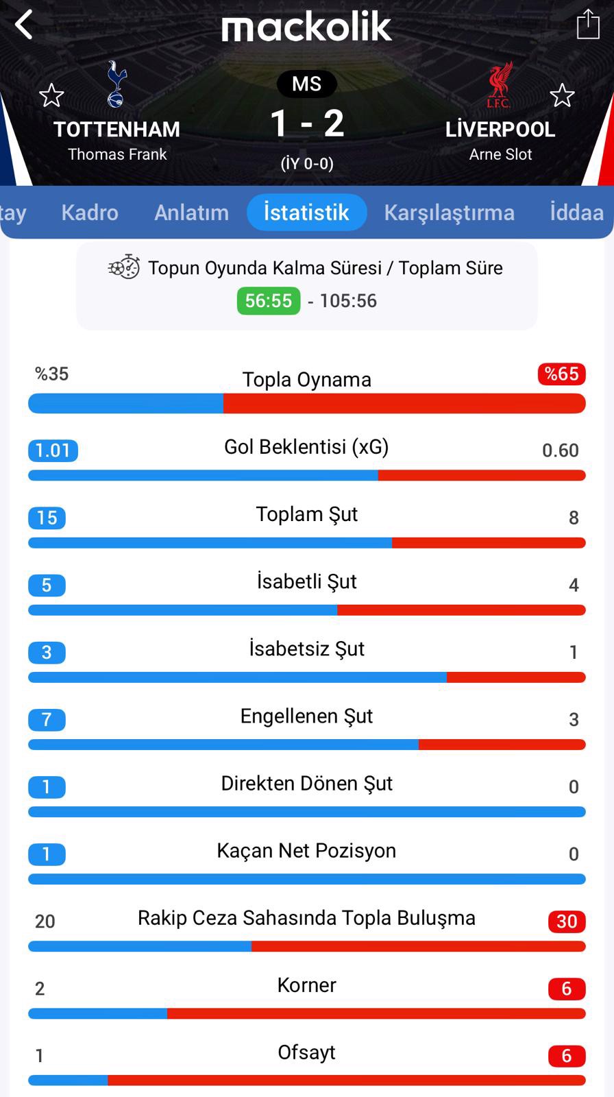 Maçta golleri Londra ekibi adına 83. dakikada Richarlison; Kırmızılar adına 56. dakikada Isak, 66. dakikada Ekitike kaydetti.