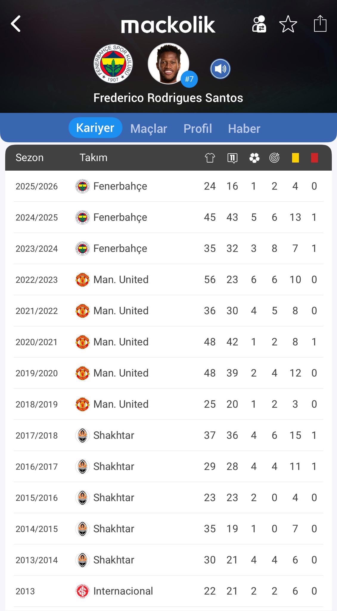 Bu sezon Fenerbahçe'de 24 maçta forma giyen Brezilyalı yıldız, 1 gol atıp 2 asist yaptı.