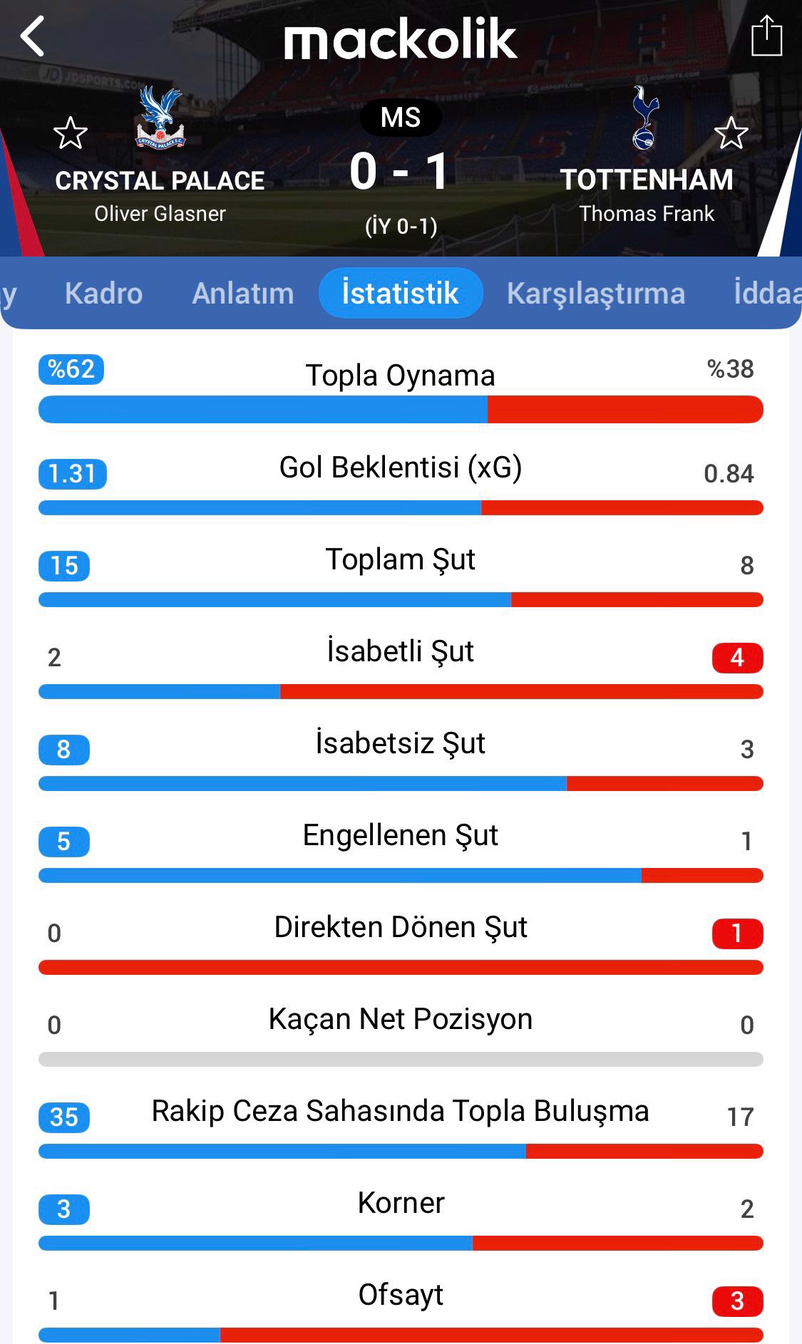 Kalan sürede başka gol olmadı ve Tottenham, Crystal Palace'ı 1-0 mağlup etti.