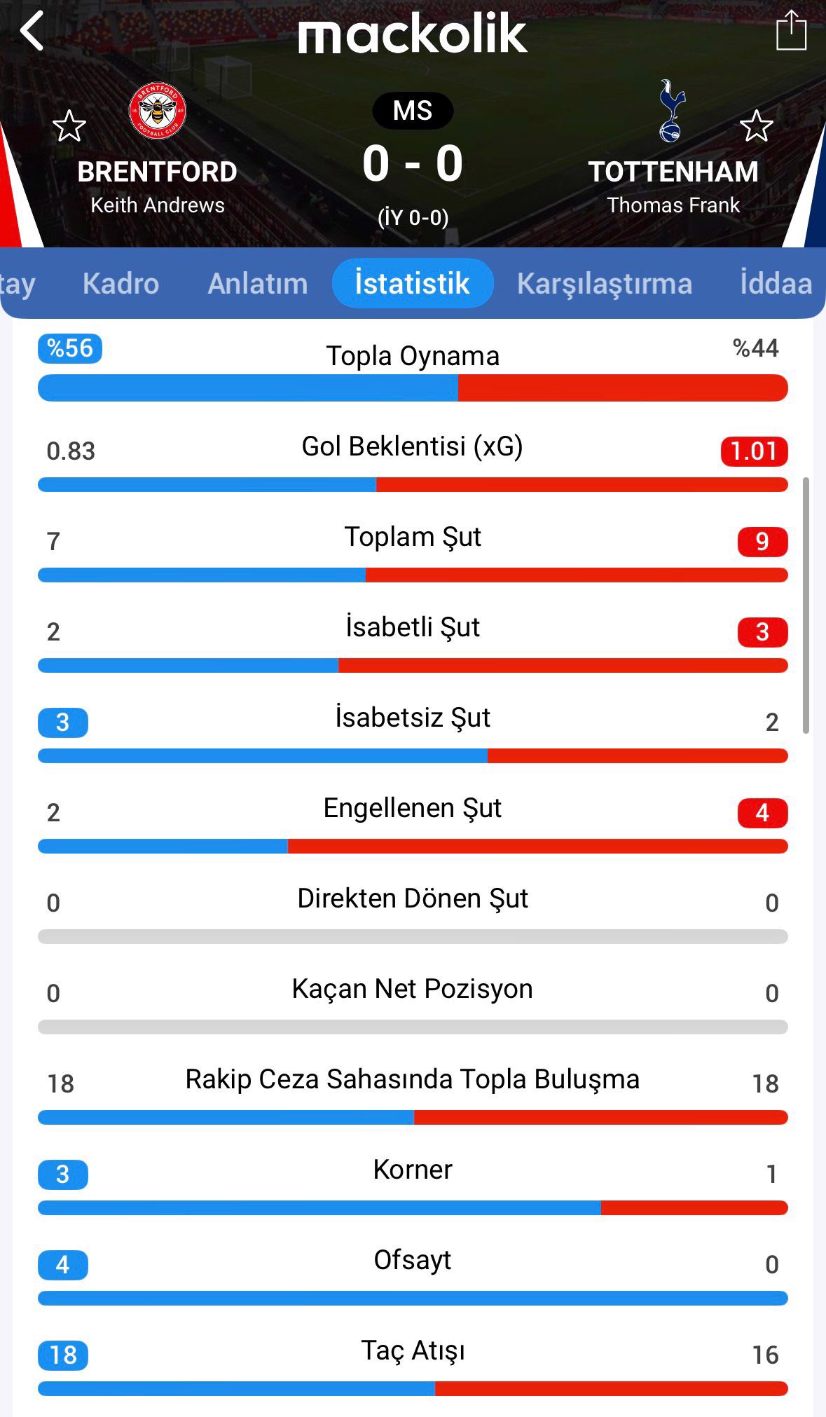 Ligde 5. beraberliğini alan Tottenham, puanını 26'ya yükseltti. Brentford ise 3. beraberliğini aldı.