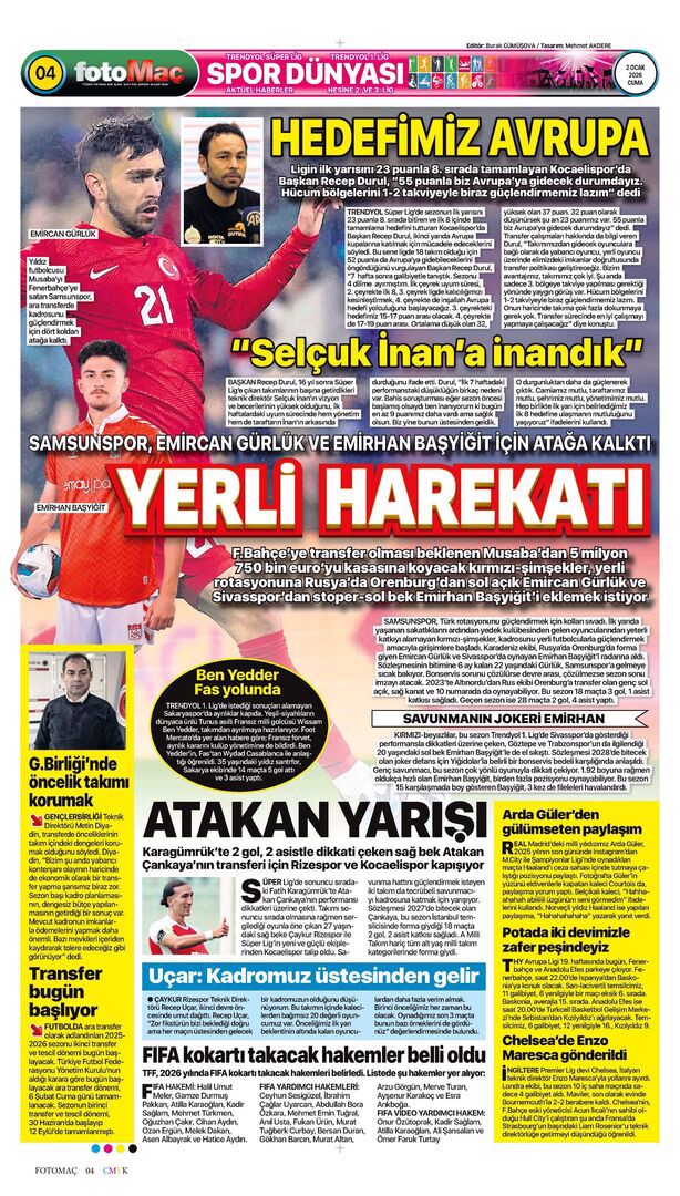 Gazetelerin spor sayfalarında günün öne çıkan manşetlerine göz atabilirsiniz.