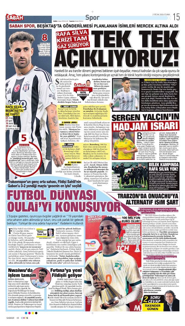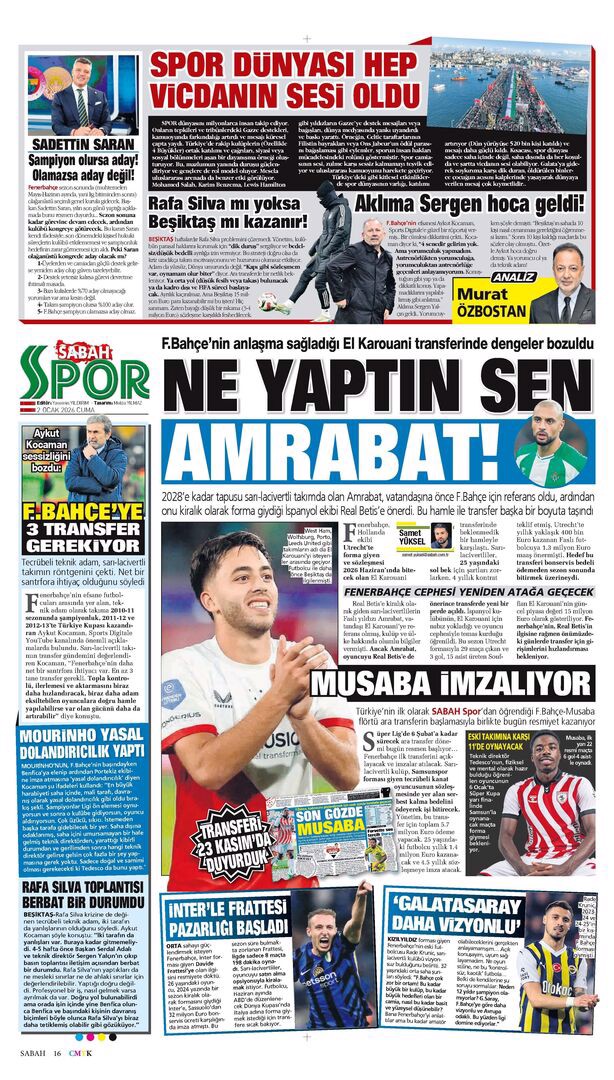 Gazetelerde günün spor sayfaları