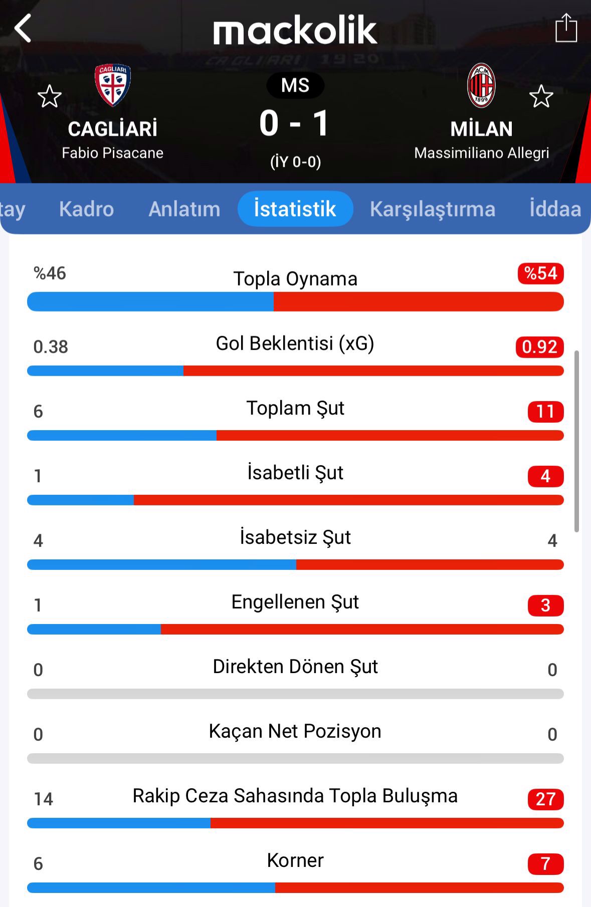 Bu sonuçla deplasman ekibi Milan, 11. galibiyetini alarak 38 puanla maç fazlasıyla lider oldu. Cagliari ise bu sezonki 8. mağlubiyetini alarak 18 puanda kaldı.