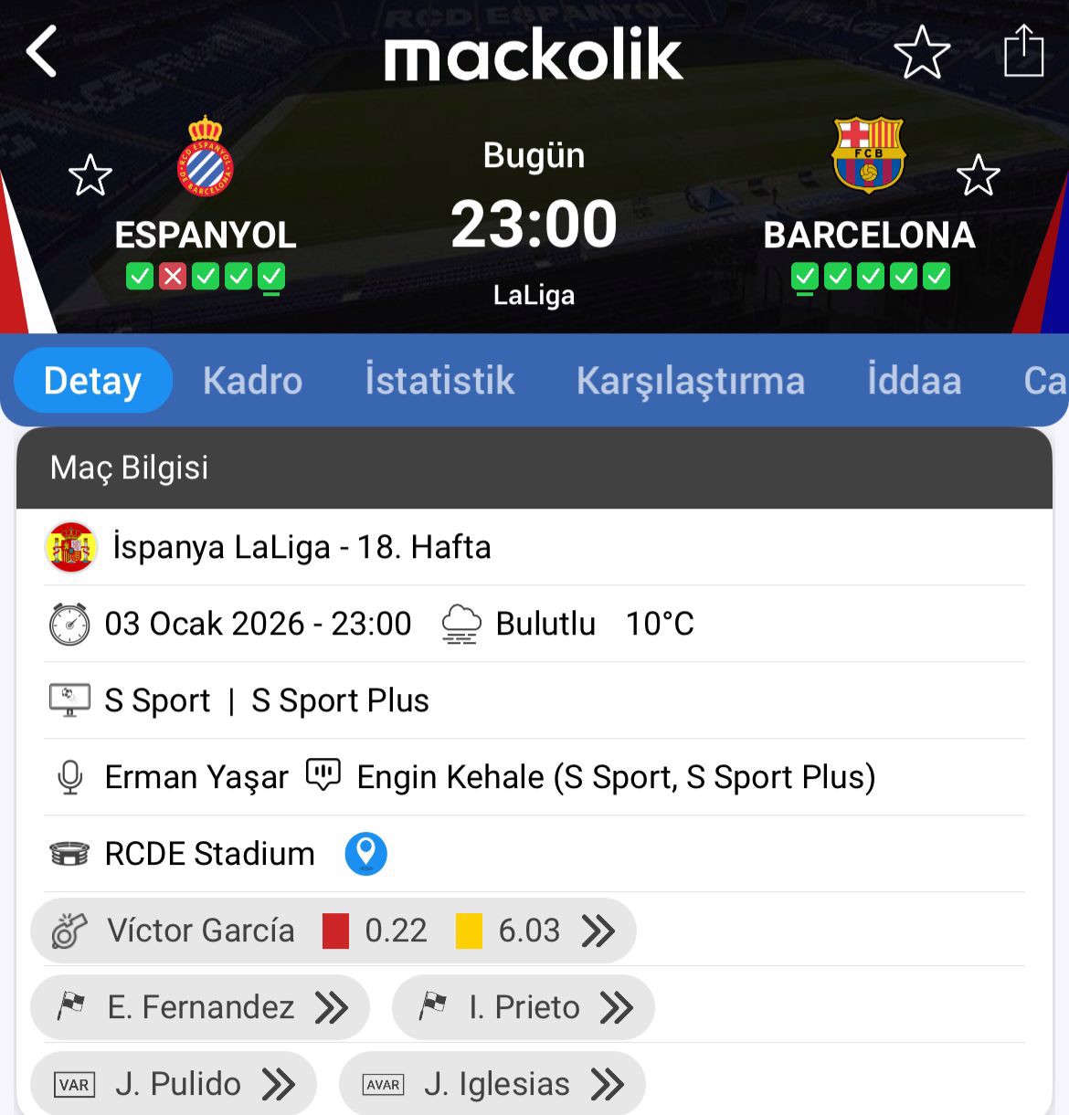 Espanyol, geçmişte yaşanan olaylar nedeniyle zaten hassas bir noktada. Eylül 2024'te Villarreal maçında bir hakemin çakmakla vurulmasının ardından kulüp, bir benzer olayda yürürlüğe girecek şekilde ertelenmiş saha kapatma cezası almıştı. Haziran 2023'te ise Barcelona'ya 4-2 kaybedilen maç sonrası yaşanan saha istilası nedeniyle stat iki maç kapatılmıştı.