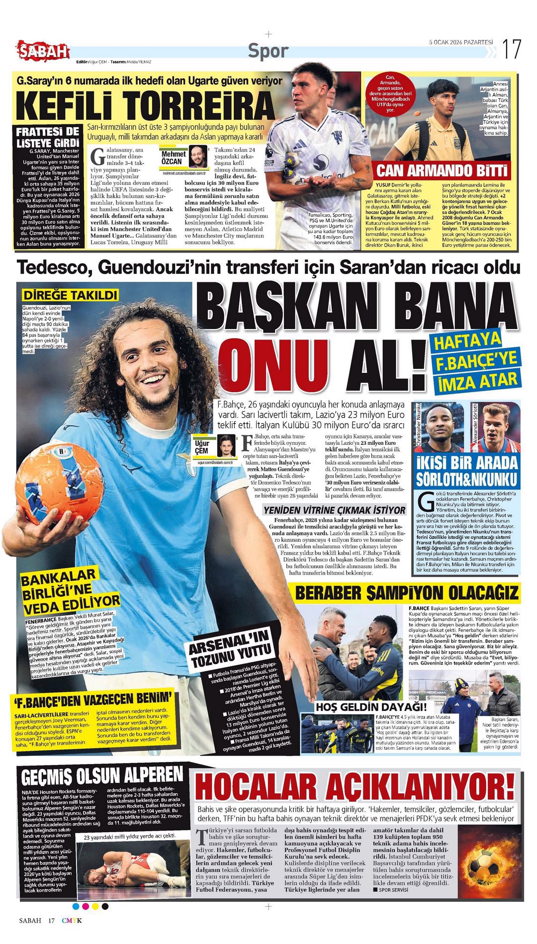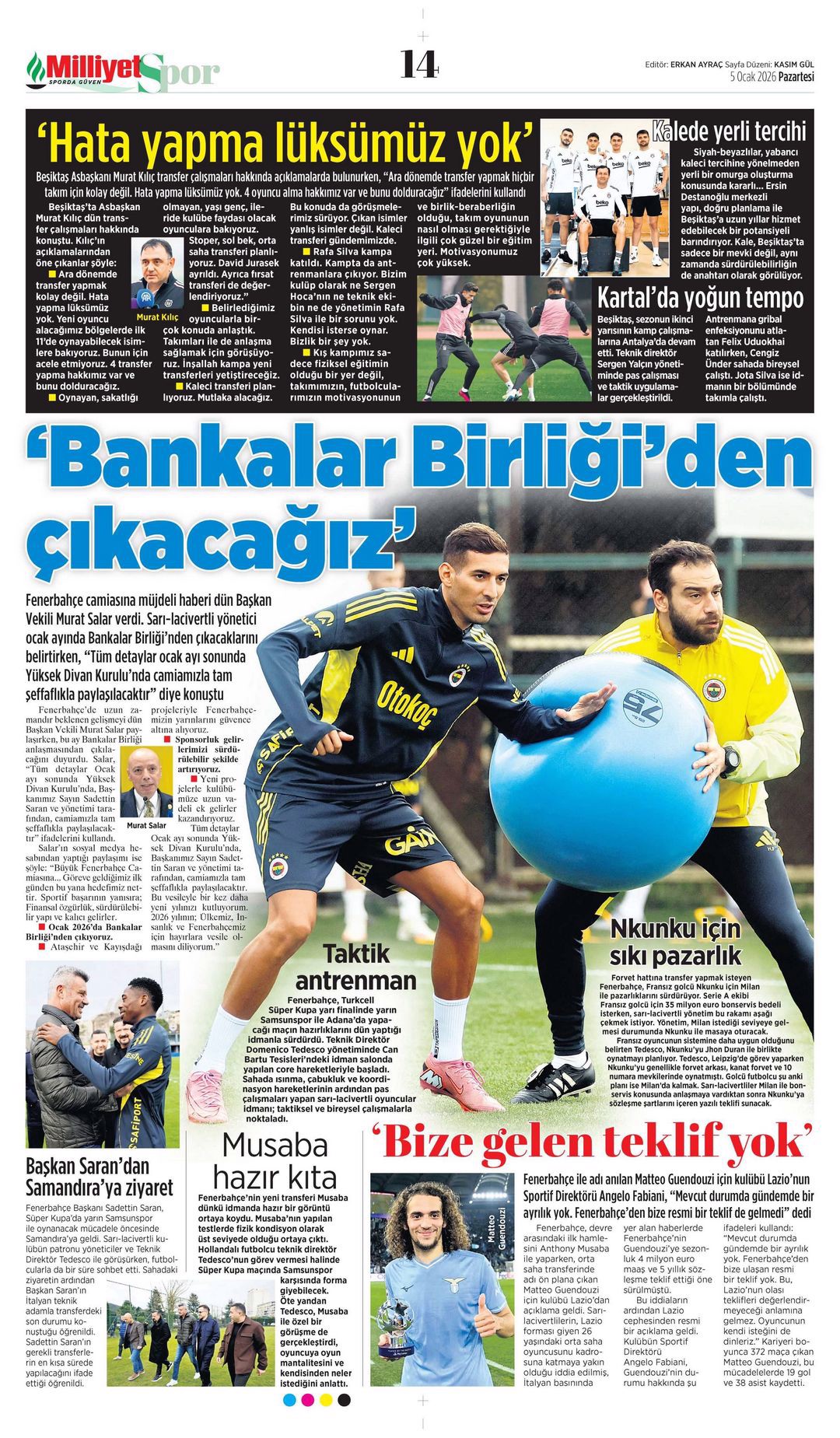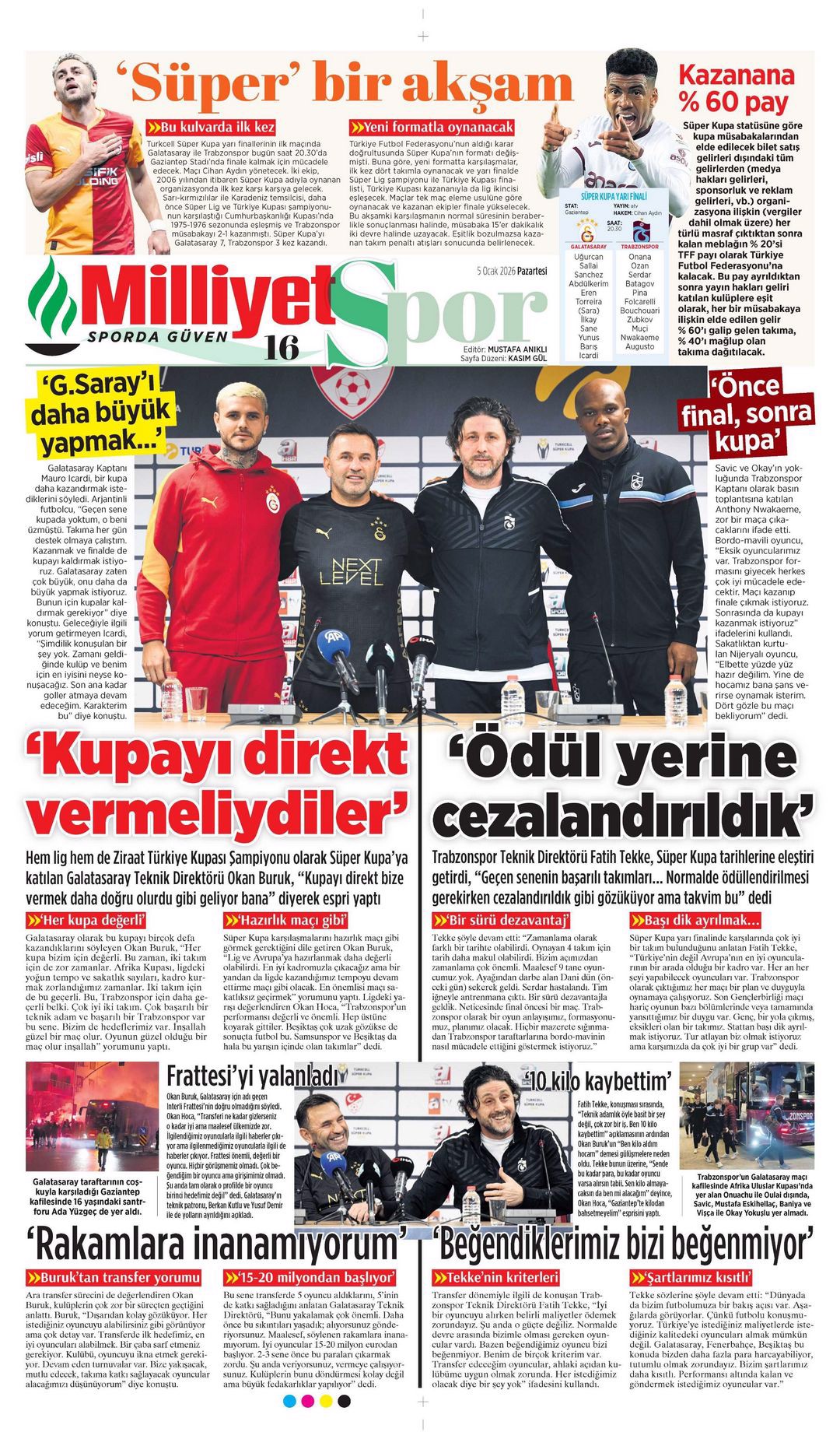 Gazetelerin spor sayfalarında günün öne çıkan manşetlerine göz atabilirsiniz.
