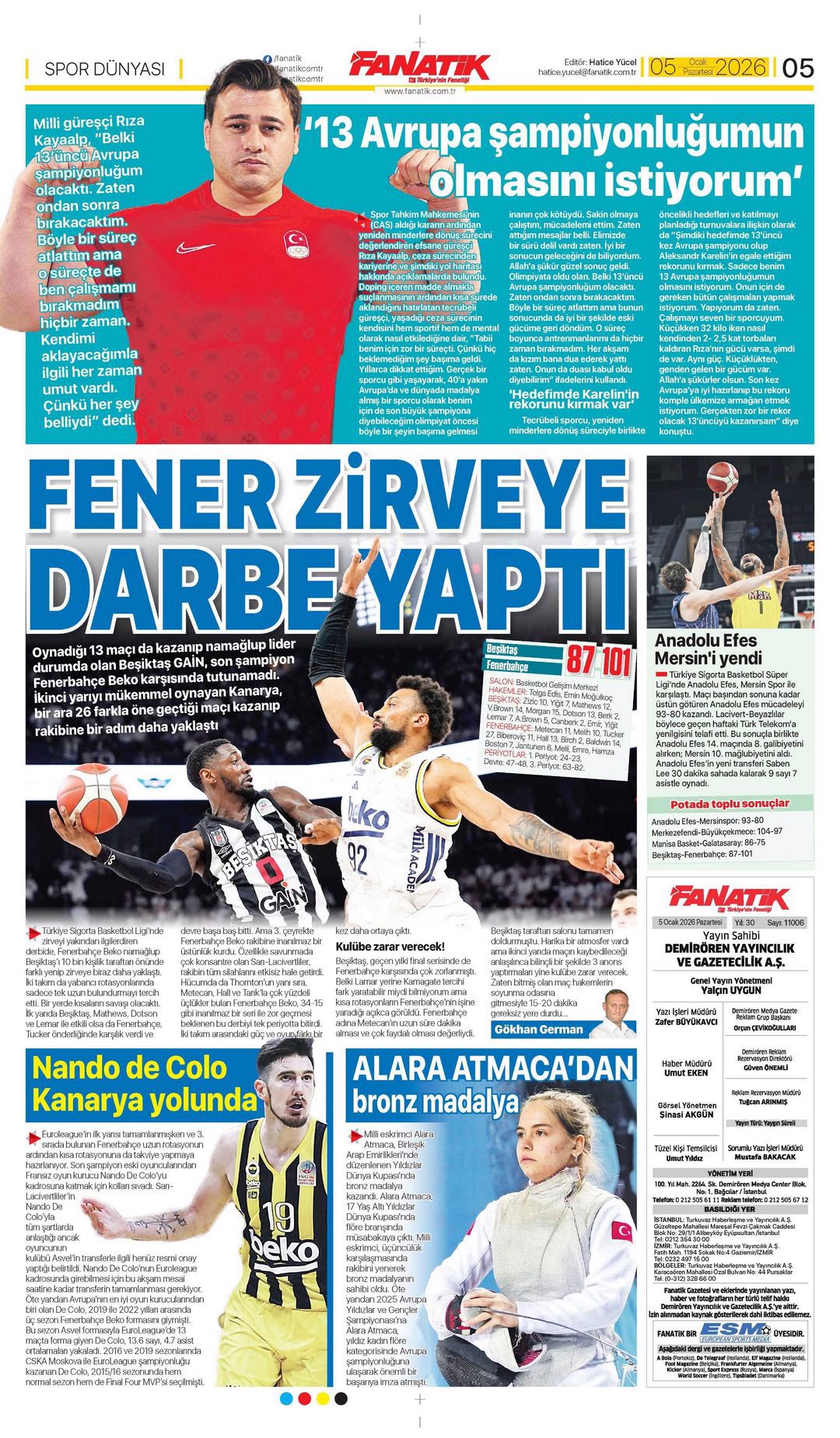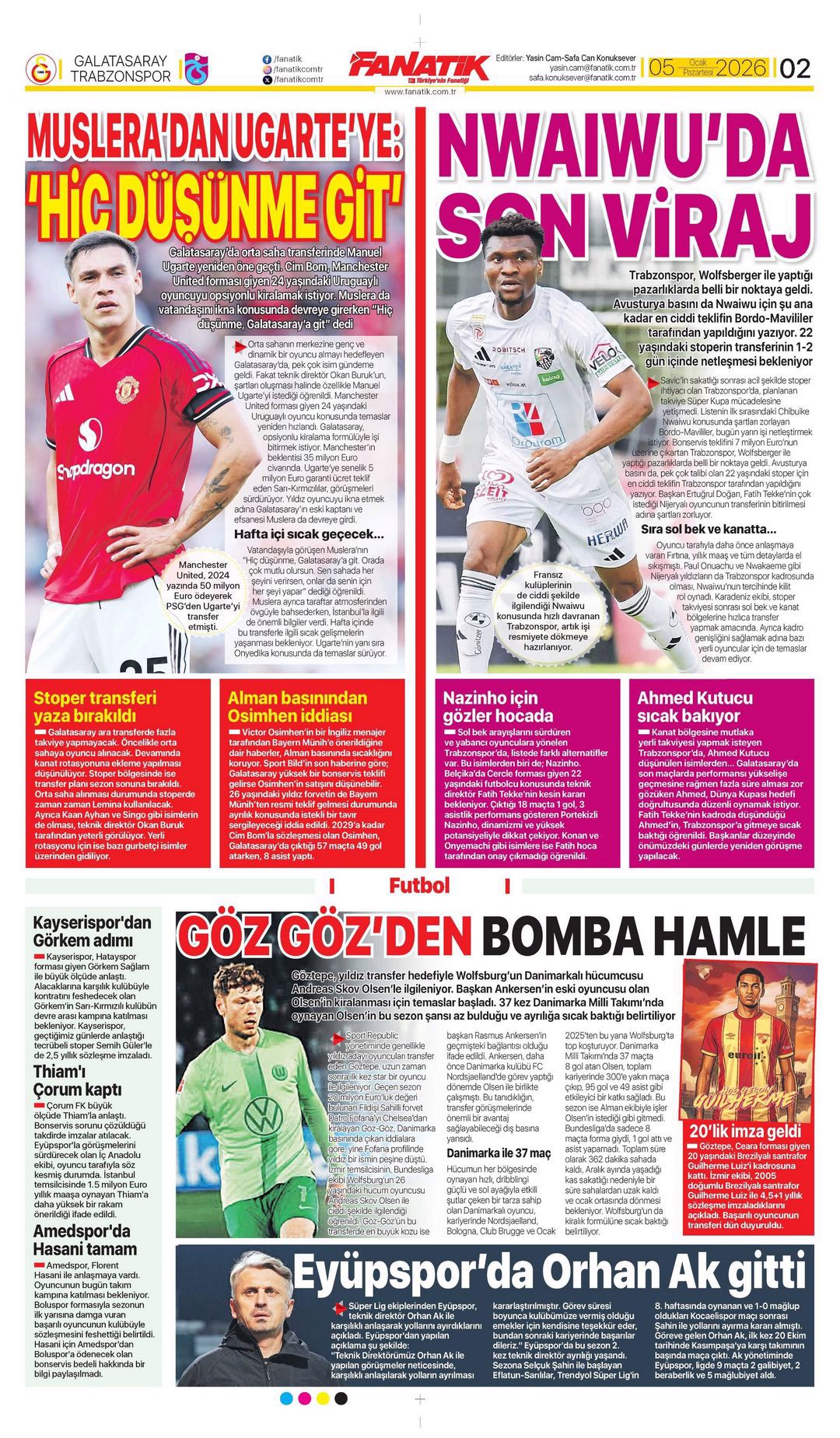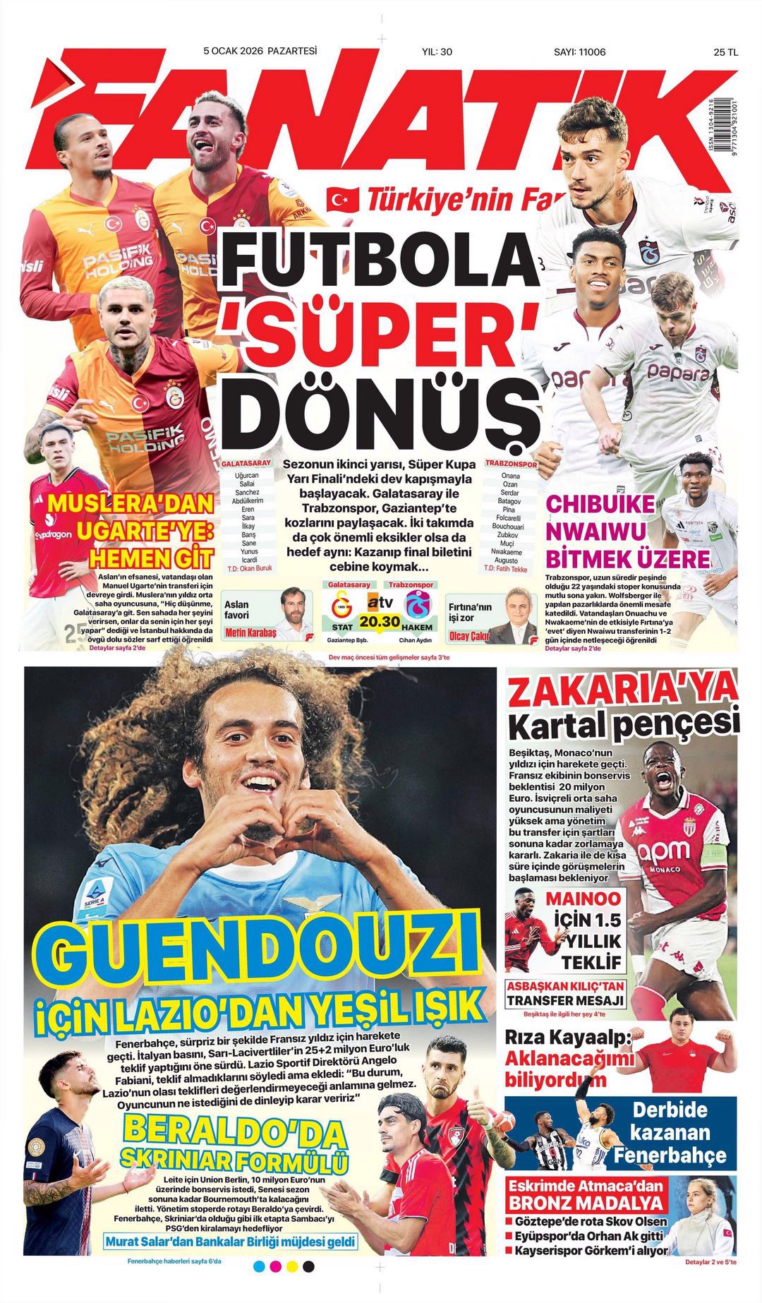 Gazetelerin spor sayfalarında günün öne çıkan manşetlerine göz atabilirsiniz.