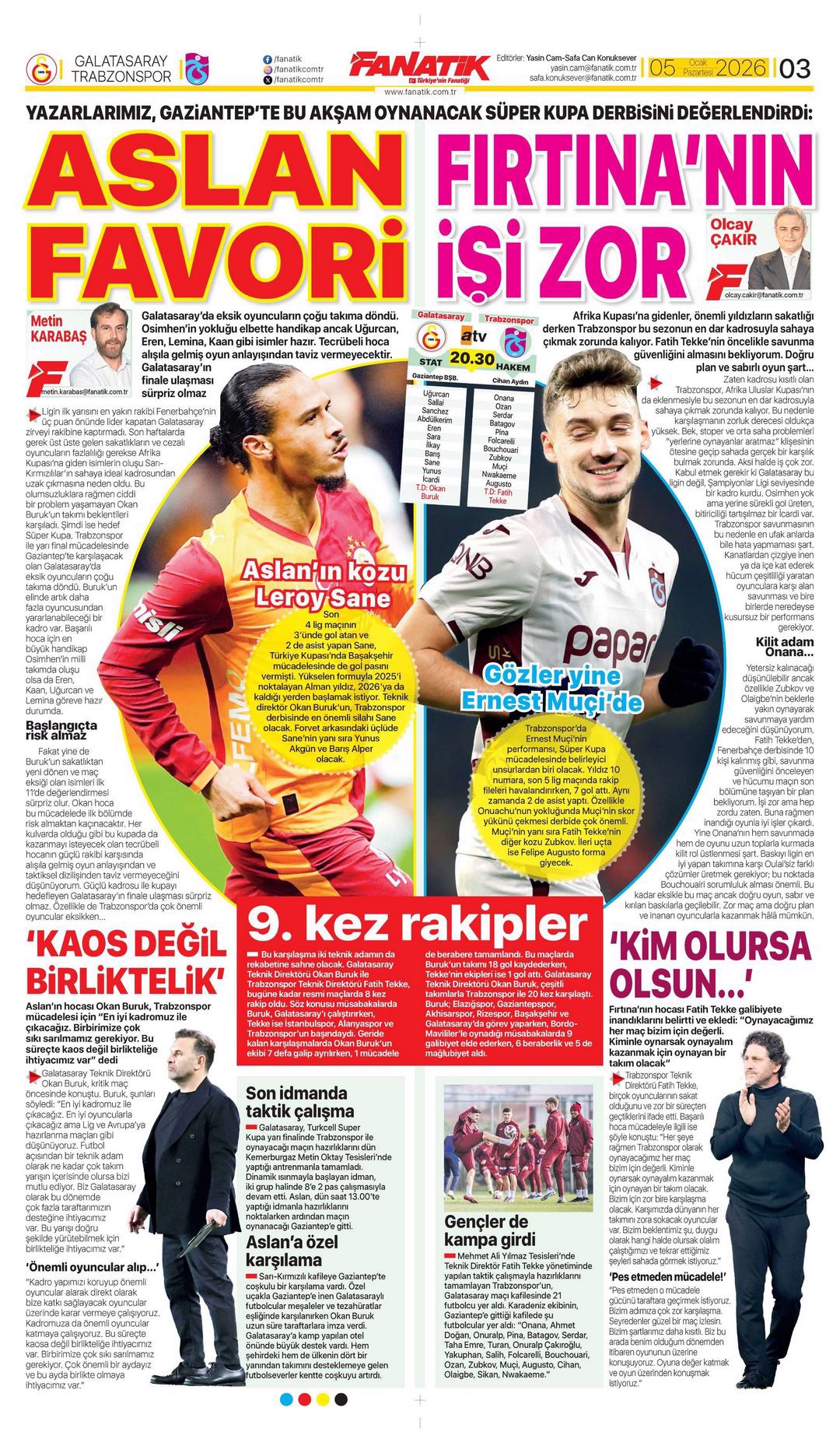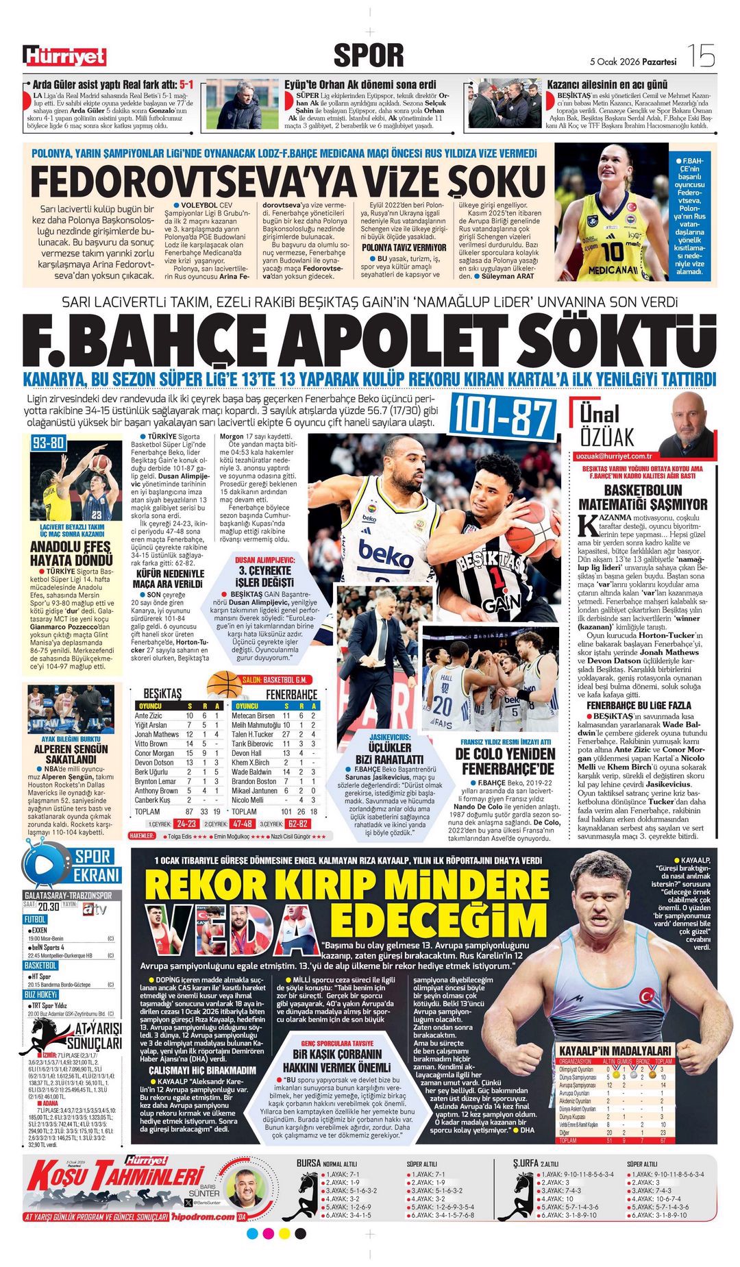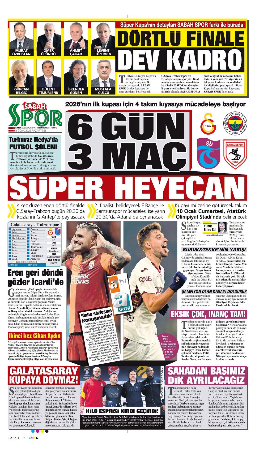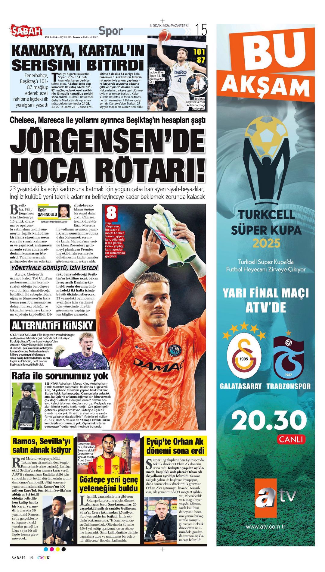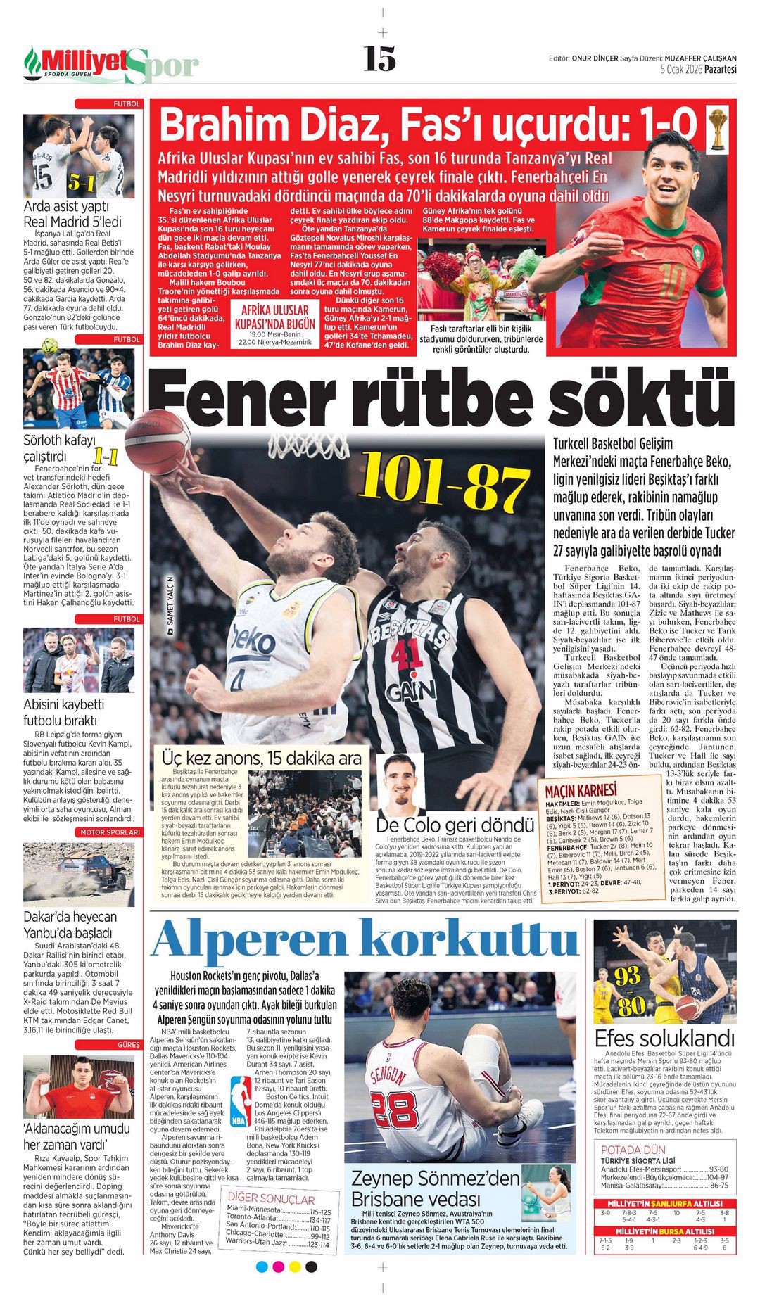 Gazetelerde günün spor sayfaları