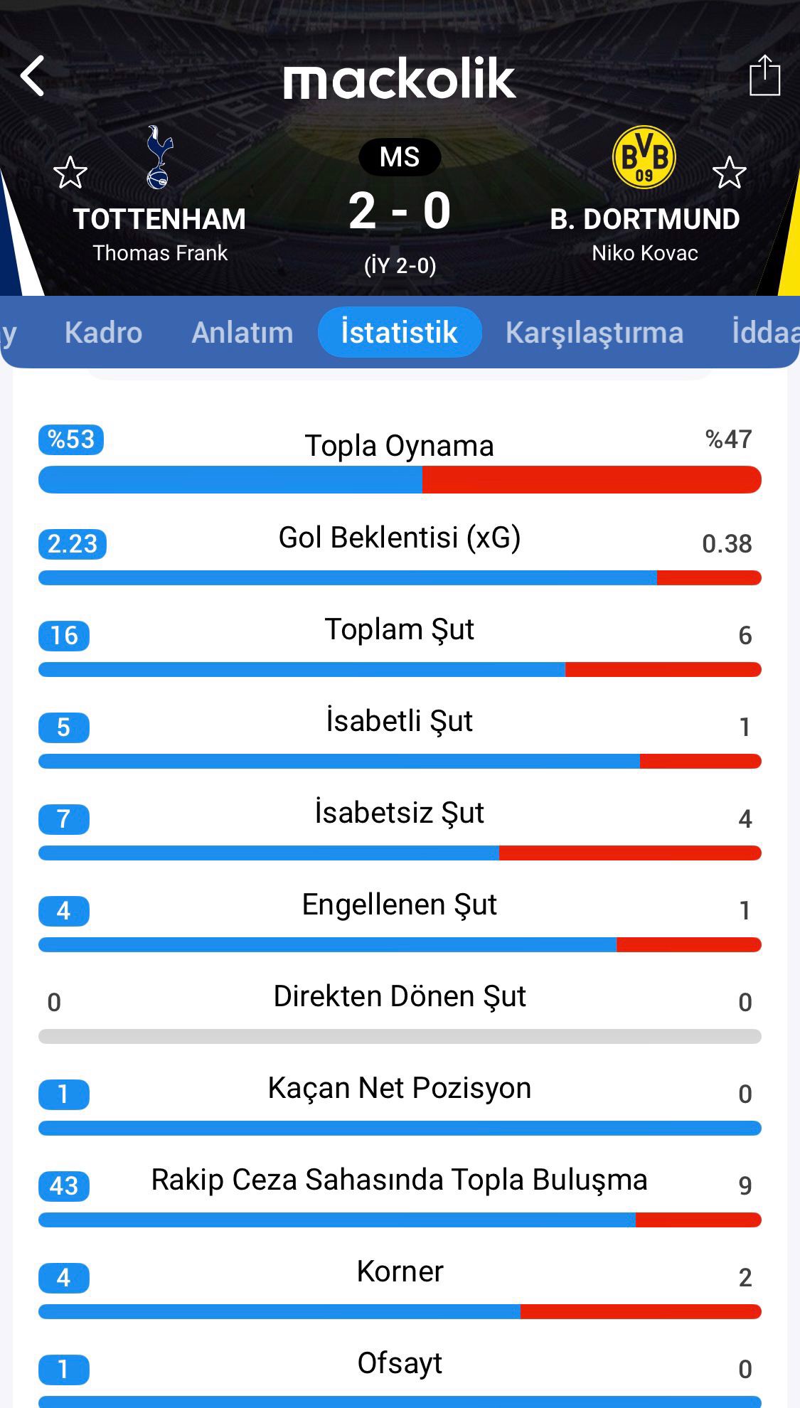 Kalan sürede skor tabelası değişmedi ve Tottenham evinde rakibini 2-0 mağlup ederek Lig Aşaması'nda 14 puana yükseldi. Borussia Dortmund ise 11 puanda kaldı.