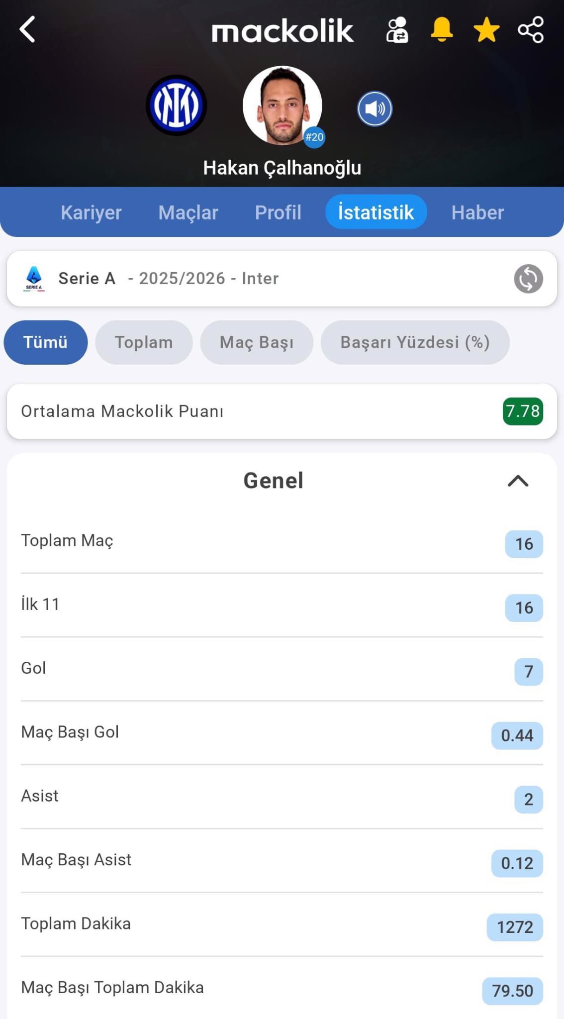 7 gol ve 2 asistlik katkı, bir merkez orta saha için oldukça değerli. Maç başına 0.44 gol ortalaması, onu sadece oyun kurucu değil aynı zamanda skora doğrudan etki eden bir oyuncu haline getiriyor. Özellikle ceza sahası çevresindeki etkinliği Inter'in hücum çeşitliliğini artırıyor.