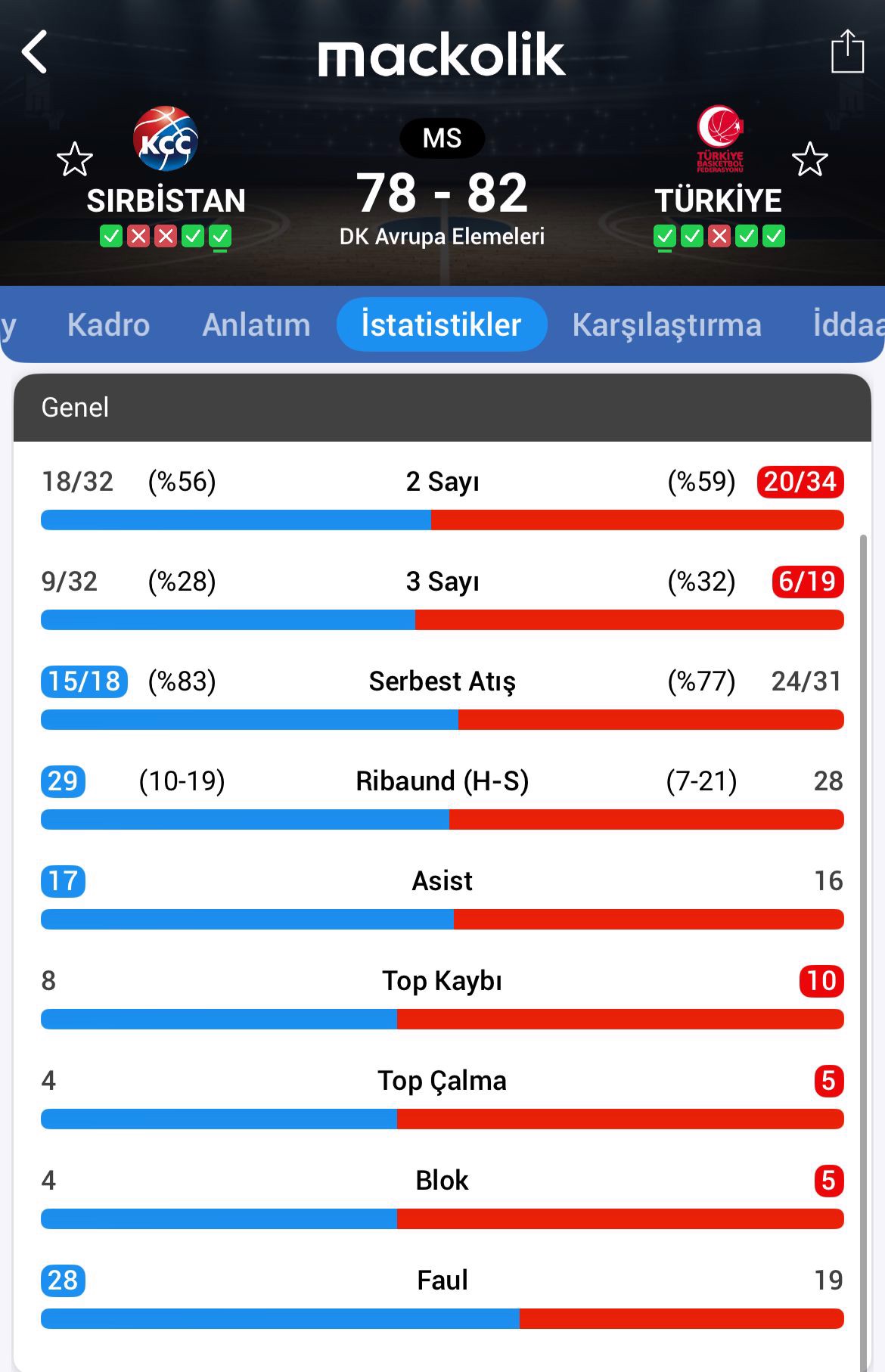 Sırbistan'ın başkenti Belgrad'daki Aleksandar Nikolic Spor Salonu'nda oynanan karşılaşmaya hızlı başlayan 12 Dev Adam, ilk çeyreği 22-13 önde kapattı.