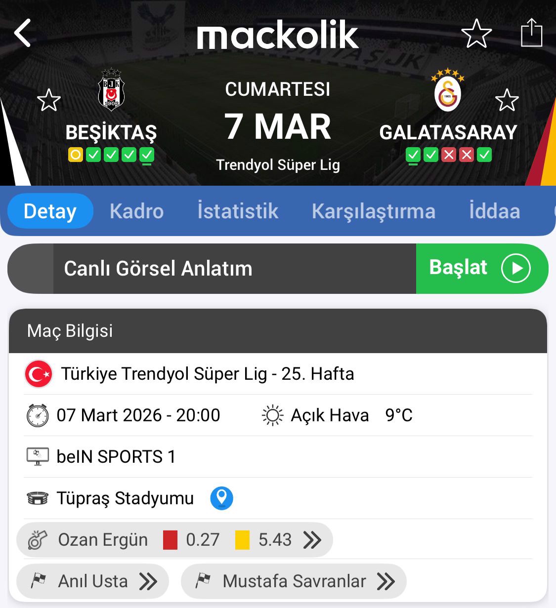 Trendyol Süper Lig'in 25. haftasındaki derbide Beşiktaş ile Galatasaray kozlarını paylaşacak.