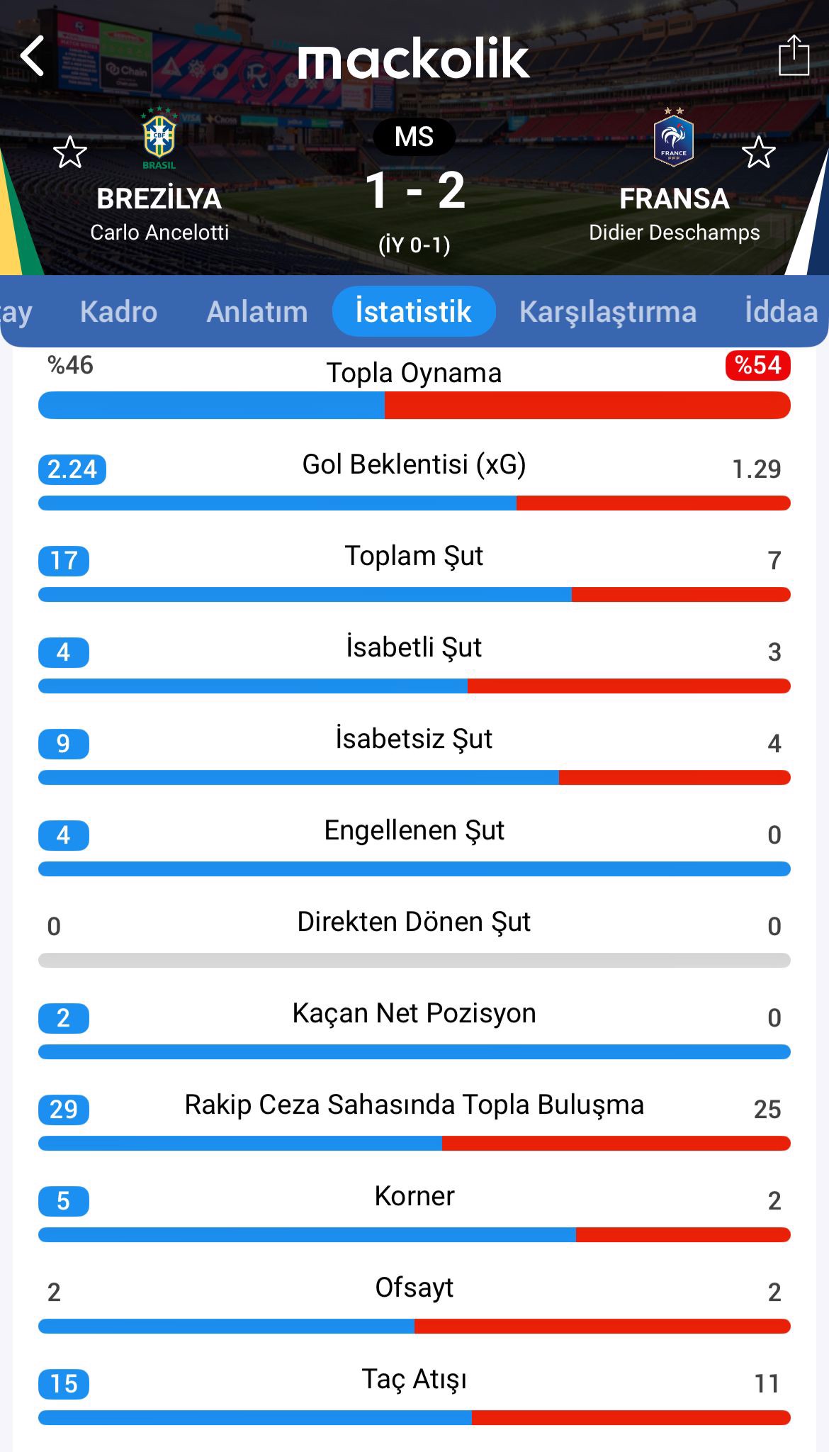 Hazırlık maçında Dünya futbolunun iki güçlü milli takımı Brezilya ve Fransa karşılaştı.